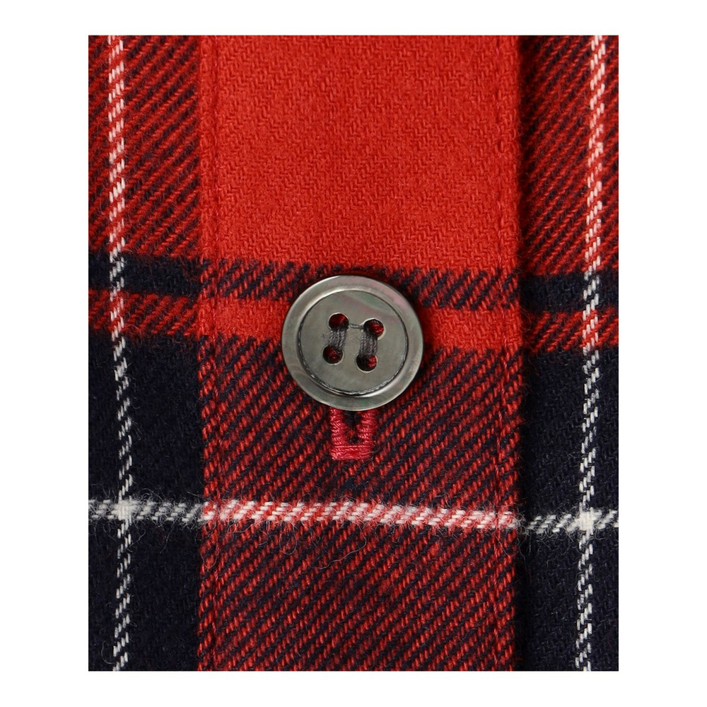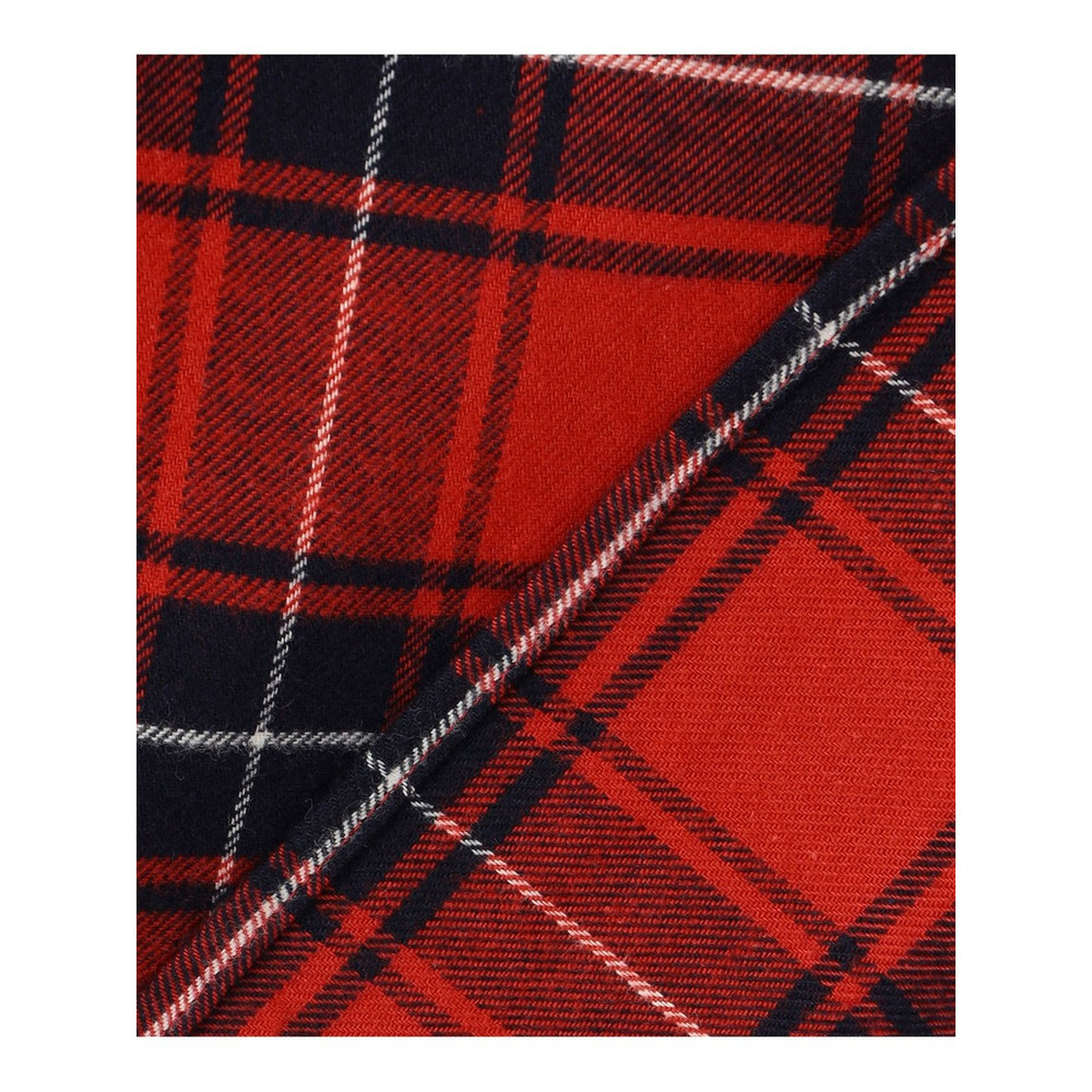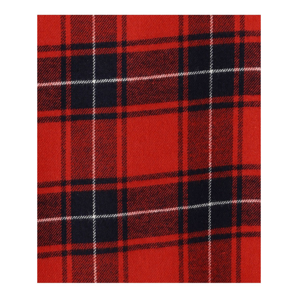上質な綿を100%使用。糸を染めてから織り上げる「先染め」ならではの、深みと奥行きのある美しい発色が特徴。さらに、生地の表面に軽く起毛をかける「微起毛加工」を施すことで、ふんわりと滑らかな肌触りに仕上げました。 伝統的なタータンチェックをベースに、少し大きめにアレンジした柄は、クラシックな雰囲気とモダンな表情を兼ね備えています。軽やかでありながらもしなやかで、程よい厚みを感じられる風合いです。季節の変わり目から冬まで長くご愛用いただける、着心地の良い素材感です。
