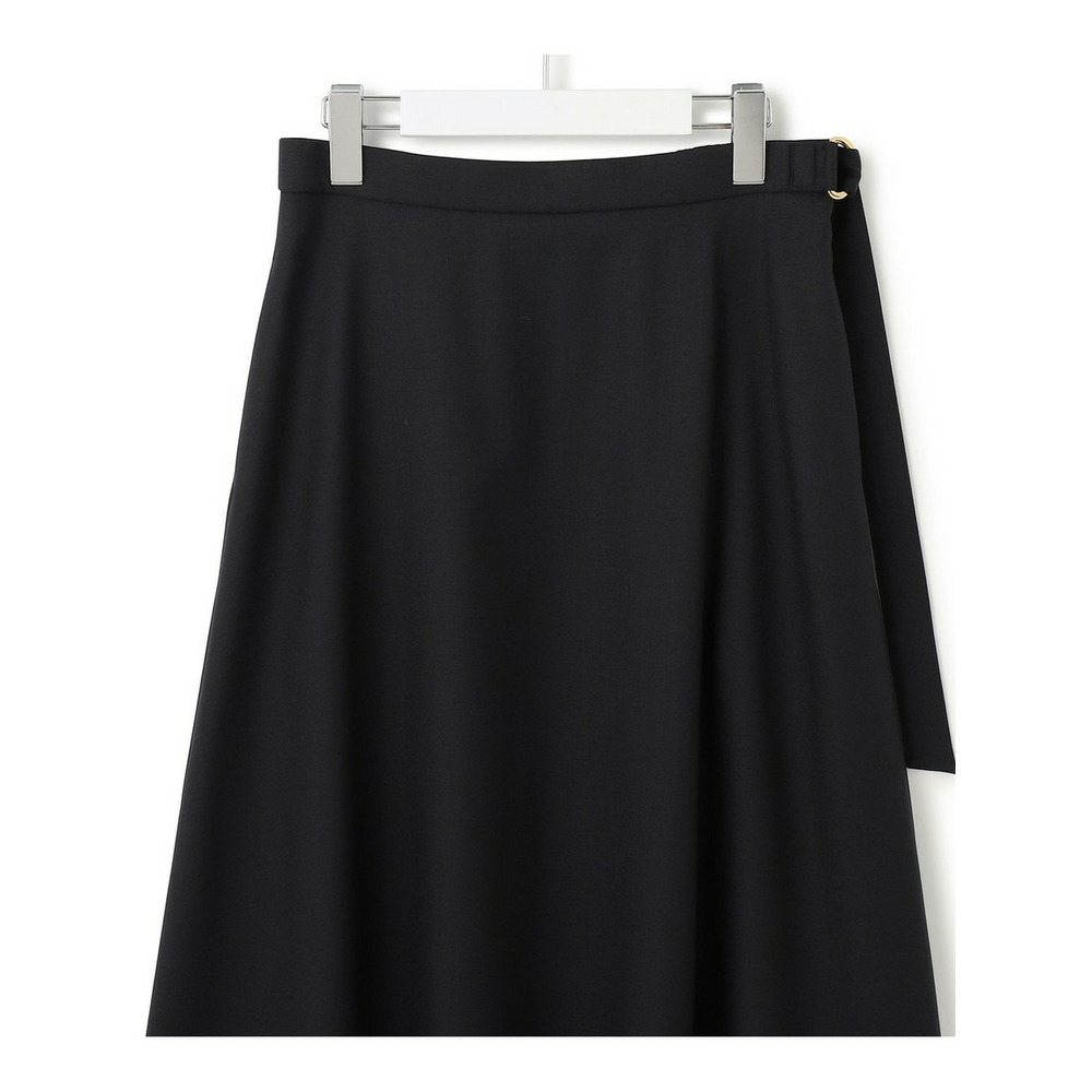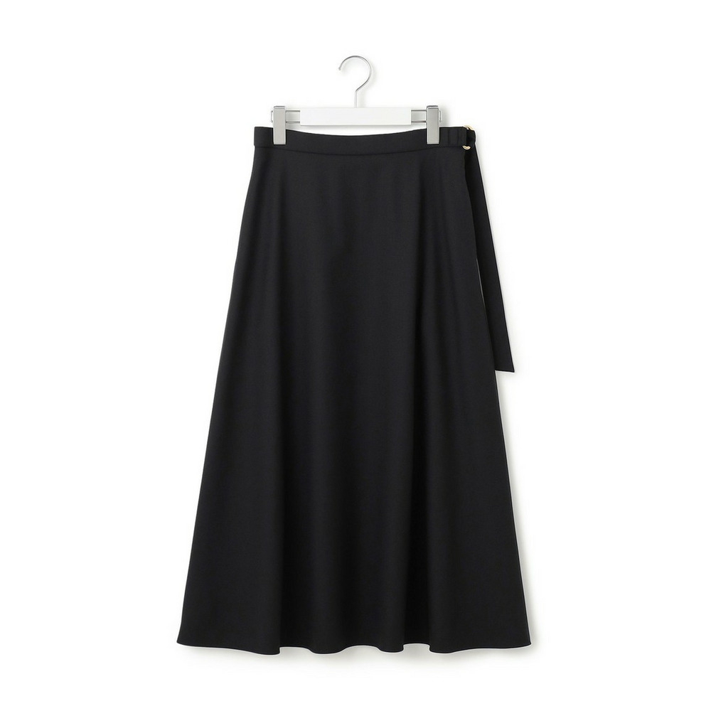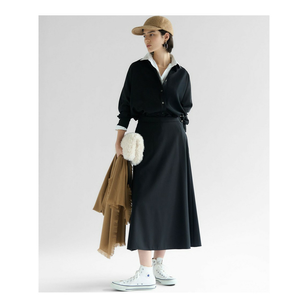 ウエストにベルトのようなデザインを施した、デザインスカート。スッキリと見せてくれる微フレアシルエットで、オフィスなどきちんと見えたいシーンにもおすすめのアイテムです。ウエストの後ろはゴム仕様で楽な穿き心地に。同素材のシャツと合わせてセットアップ風に着用すれば、より洗練された印象を与えてくれます。ざっくりとしたニットや、ブラウスなど合わせるアイテム次第で表情を変えるため、幅広いシーンで活躍する1枚。カラーはシックで上品な印象を与えるブラック(#005)、深みのある落ち着いたグリーン(#064)の2色展開です。