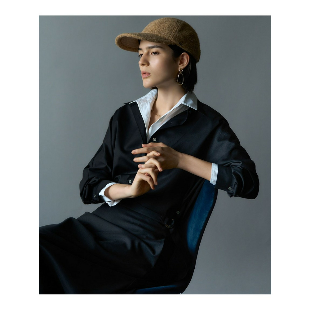 オーストラリア産メリノウールを贅沢に使用した、23区別注の上質なウール素材です。光沢感のある織り方で仕上げており、通常のウールよりも非常に細い糸を使うことで、なめらかで美しい表面感と、深みのある豊かな発色が特徴です。 さらに、特殊なポリエステル繊維を組み合わせることで、快適なストレッチ性を実現しました。動きやすく、ストレスフリーな着心地を叶えます。 静電気を抑える特殊な糸もブレンドしているため、ほこりや毛が付きにくく、いつでも清潔感を保ちやすいのも嬉しいポイントです。