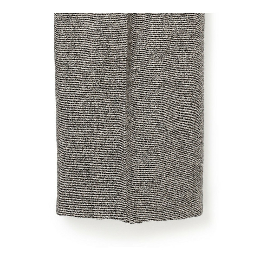 素朴さのあるホームスパン素材に、微光沢感をプラスしてシックに仕上げました。さらにラメ混にすることで、エレガントさとトレンド感のあるツイード素材になります。独特のムラのある風合いを表現する為に、微光沢感のあるレーヨンにウールを巻き付けたタテ糸を使用。ヨコ糸にはウールとポリウレタンを使用してストレッチ性を出すことで穿き心地の良い素材に仕上げています。