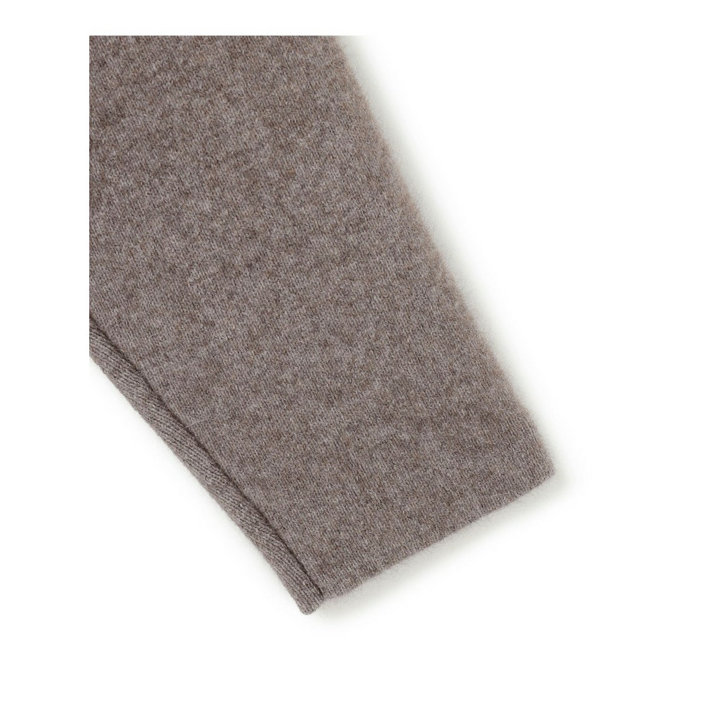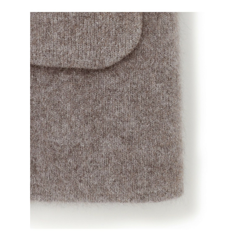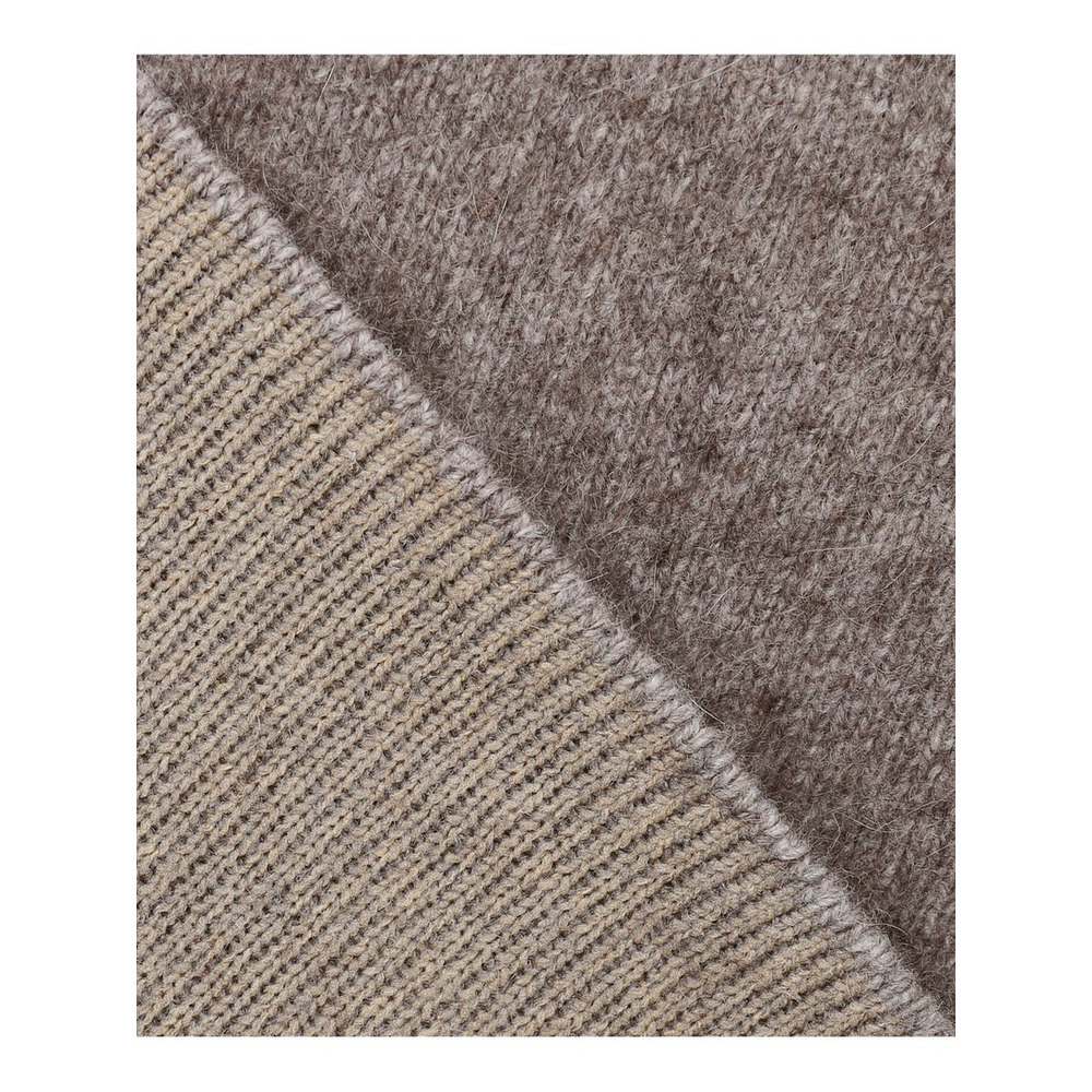 軽くて暖かく、ふわふわと柔らかな肌触りが特徴のチャイニーズラクーンと、スポンジのような質感のポリエステル素材をダブルフェイス風に編み立てています。ファーのような表情感もありながら、裏面にポリエステルを使うことで、インナーに毛がつきにくく、滑らかな着心地を実現しました。