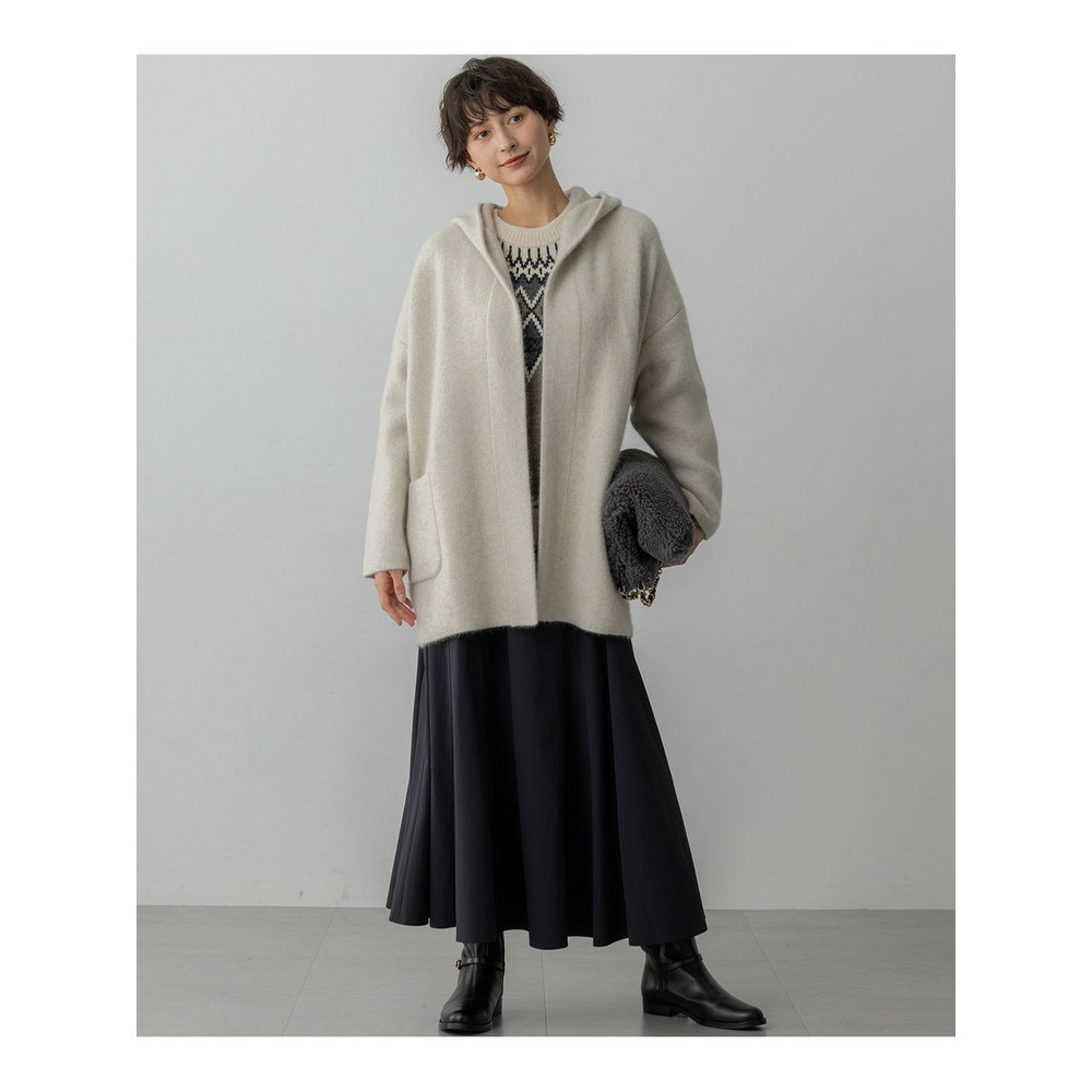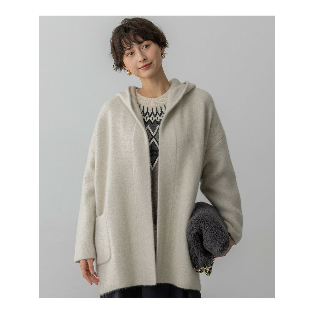 【洗える】ラクーンブレンドダブルフェイス フーディー ニットカーディガン