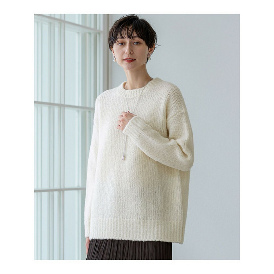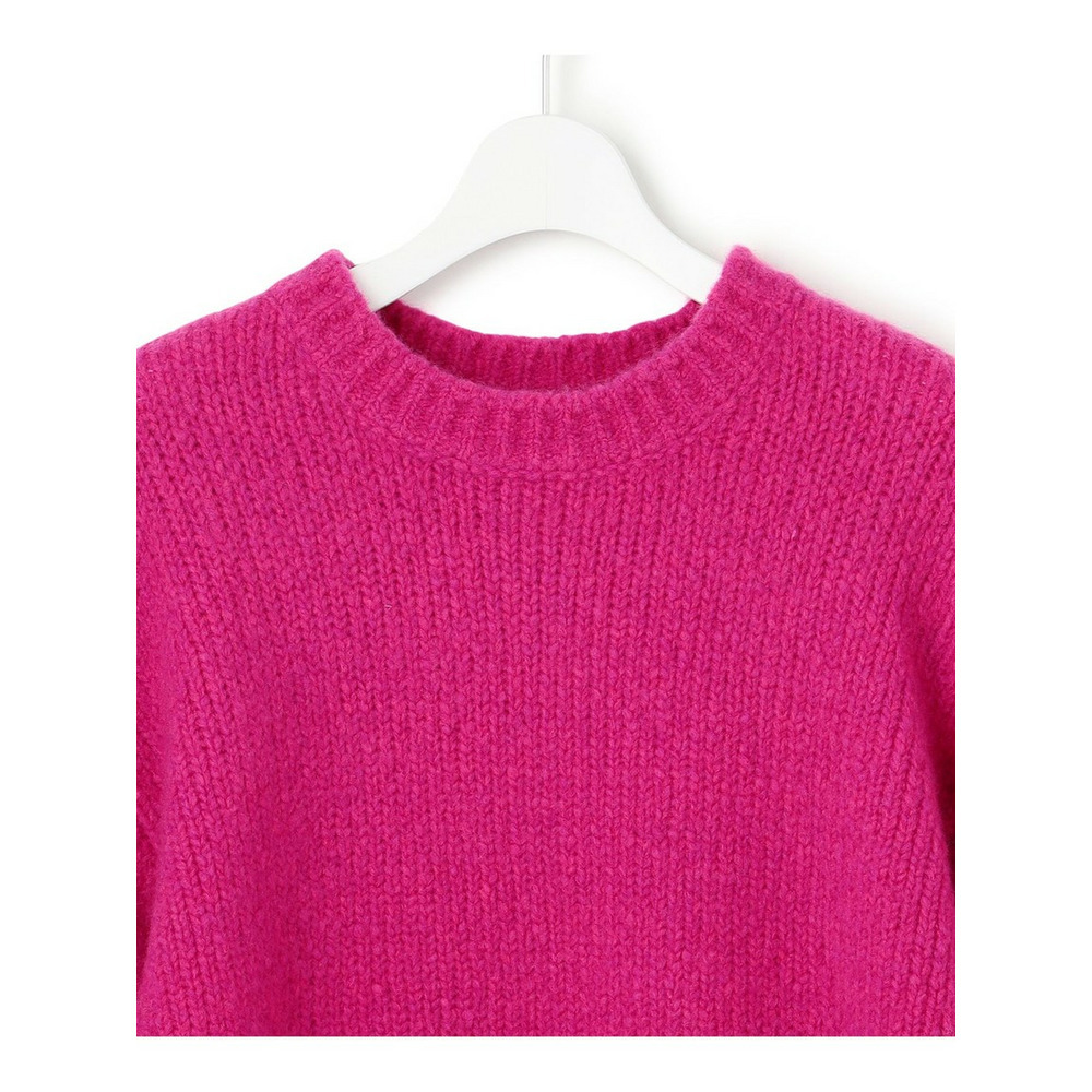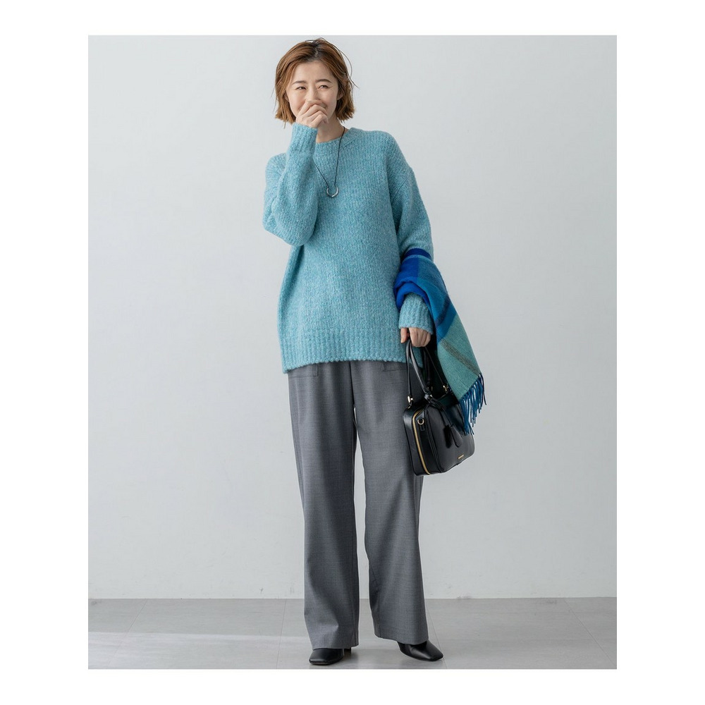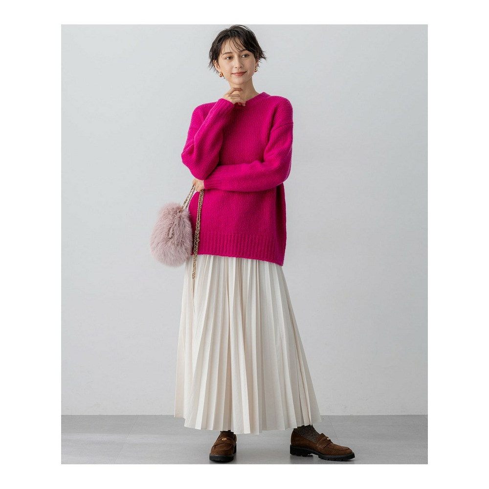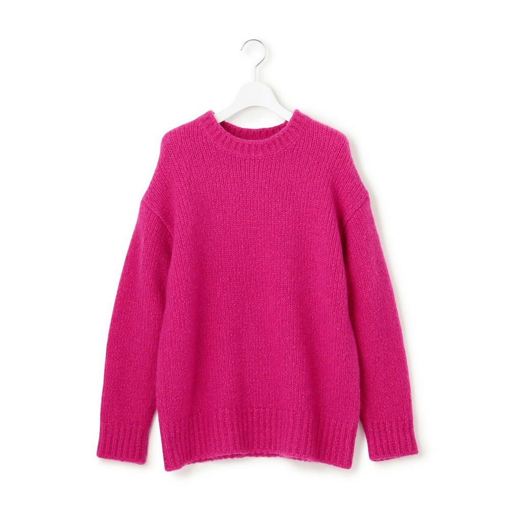 イタリア染めならではの鮮やかな発色と可愛らしい素材感が目を引くニットです。太めのリブ襟がポイントのクルーネックデザインで、ゆったりとしたシルエットとヒップが隠れる丈感で、真冬でも暖かくリラックスして着られます。着るだけでコーディネートの主役になり、シンプルなボトムスと合わせるだけでおしゃれなスタイルが完成します。カラーは、着回し力のあるホワイト(#001)、鮮やかな発色が目を引くマゼンタ(#014)、爽やかなスカイブルー(#072)の3色展開です。