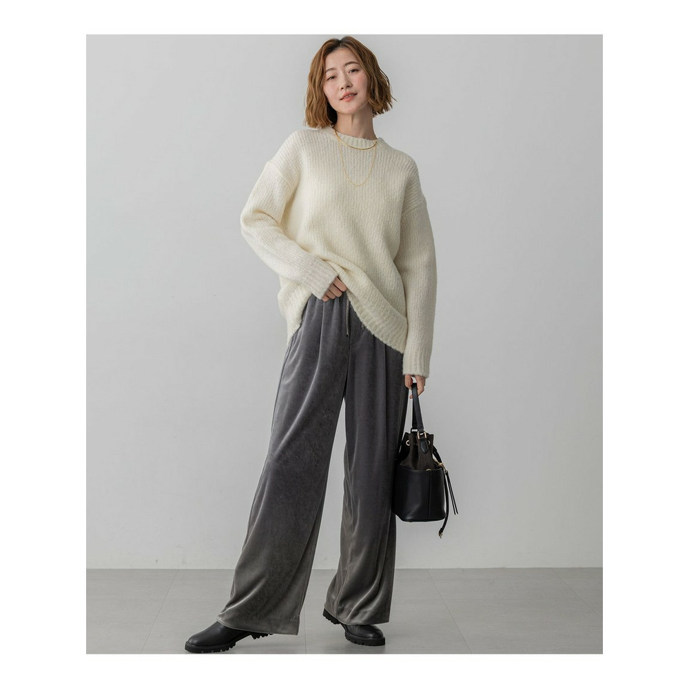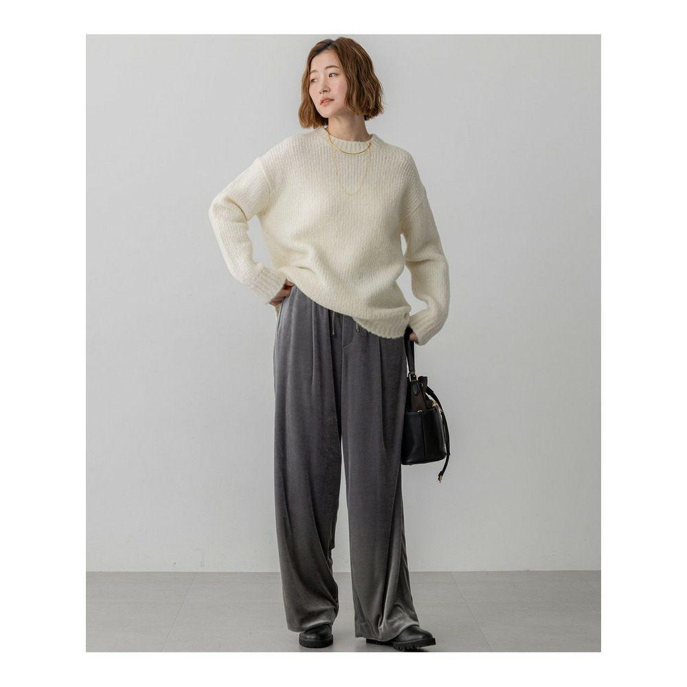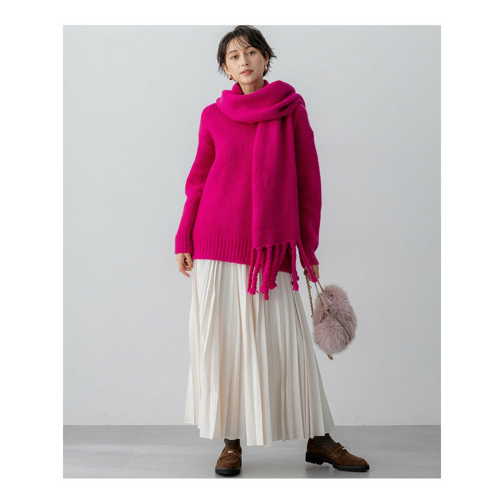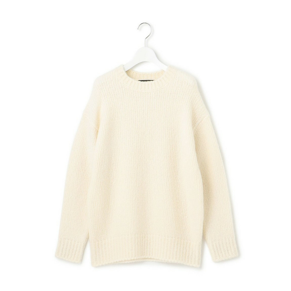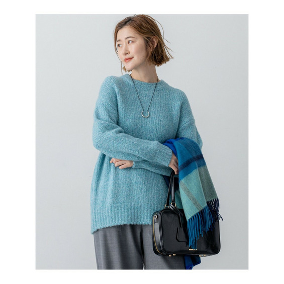 イタリア染めならではの鮮やかな発色と可愛らしい素材感が目を引くニットです。太めのリブ襟がポイントのクルーネックデザインで、ゆったりとしたシルエットとヒップが隠れる丈感で、真冬でも暖かくリラックスして着られます。着るだけでコーディネートの主役になり、シンプルなボトムスと合わせるだけでおしゃれなスタイルが完成します。カラーは、着回し力のあるホワイト(#001)、鮮やかな発色が目を引くマゼンタ(#014)、爽やかなスカイブルー(#072)の3色展開です。