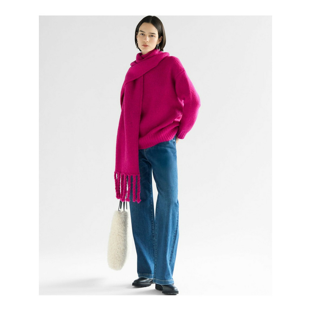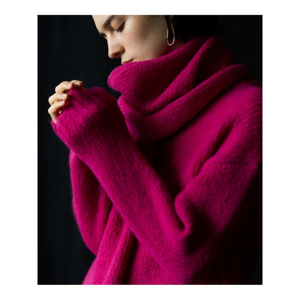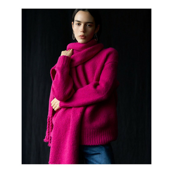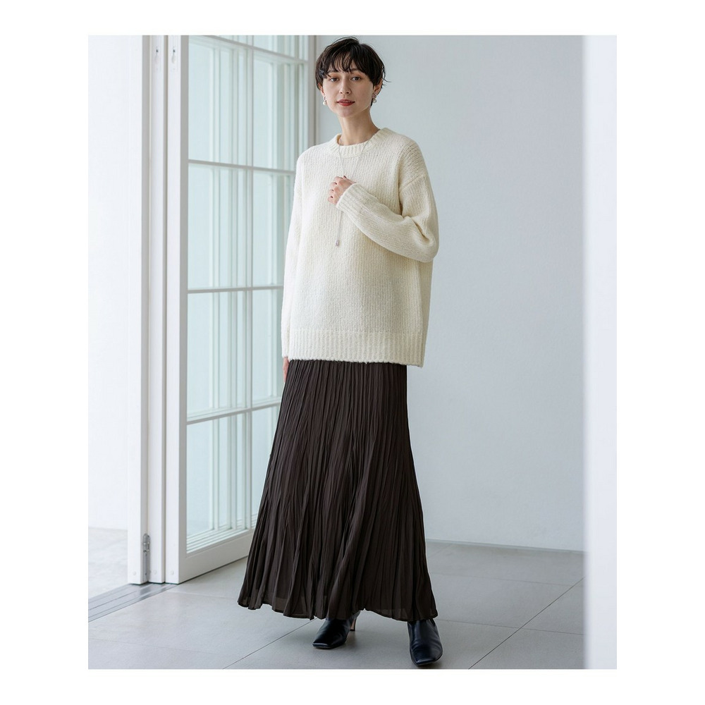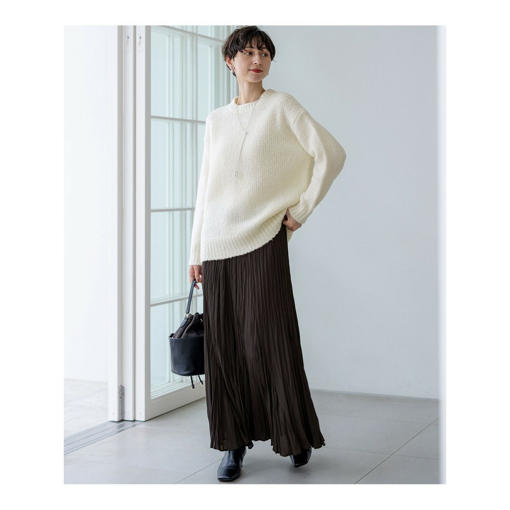 イタリア染めならではの鮮やかな発色と可愛らしい素材感が目を引くニットです。太めのリブ襟がポイントのクルーネックデザインで、ゆったりとしたシルエットとヒップが隠れる丈感で、真冬でも暖かくリラックスして着られます。着るだけでコーディネートの主役になり、シンプルなボトムスと合わせるだけでおしゃれなスタイルが完成します。カラーは、着回し力のあるホワイト(#001)、鮮やかな発色が目を引くマゼンタ(#014)、爽やかなスカイブルー(#072)の3色展開です。