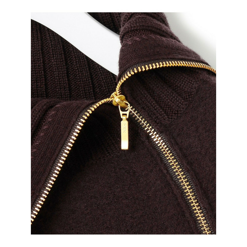 ジップデザインが目を引くタートルニット。アームホールからネックラインにかけて配されたジップは、デザインのアクセントであると同時に、着こなしに変化をもたらします。ファスナーを少し開けてインナーを覗かせたり、抜け感を演出したりと、様々な表情をお楽しみいただけます。襟元、袖口、裾にはふっくらとした厚みのあるバルキーリブを使用し、全体のシルエットにメリハリと上質感をプラスしています。シンプルなパンツやスカートと合わせるだけで、こなれたスタイリングが完成します。オフィスシーンではきれいめパンツと、休日はデニムやワイドパンツやスカートと合わせて、幅広いシーンで活躍します。カラーは、上品で合わせやすい定番のグレー(#004)、やわらかく女性らしい印象を与えるベージュ(#033)、深みがありシックで落ち着いたダークブラウン(#035)、知的で洗練された印象を与える万能なネイビー(#075)の4色展開です。