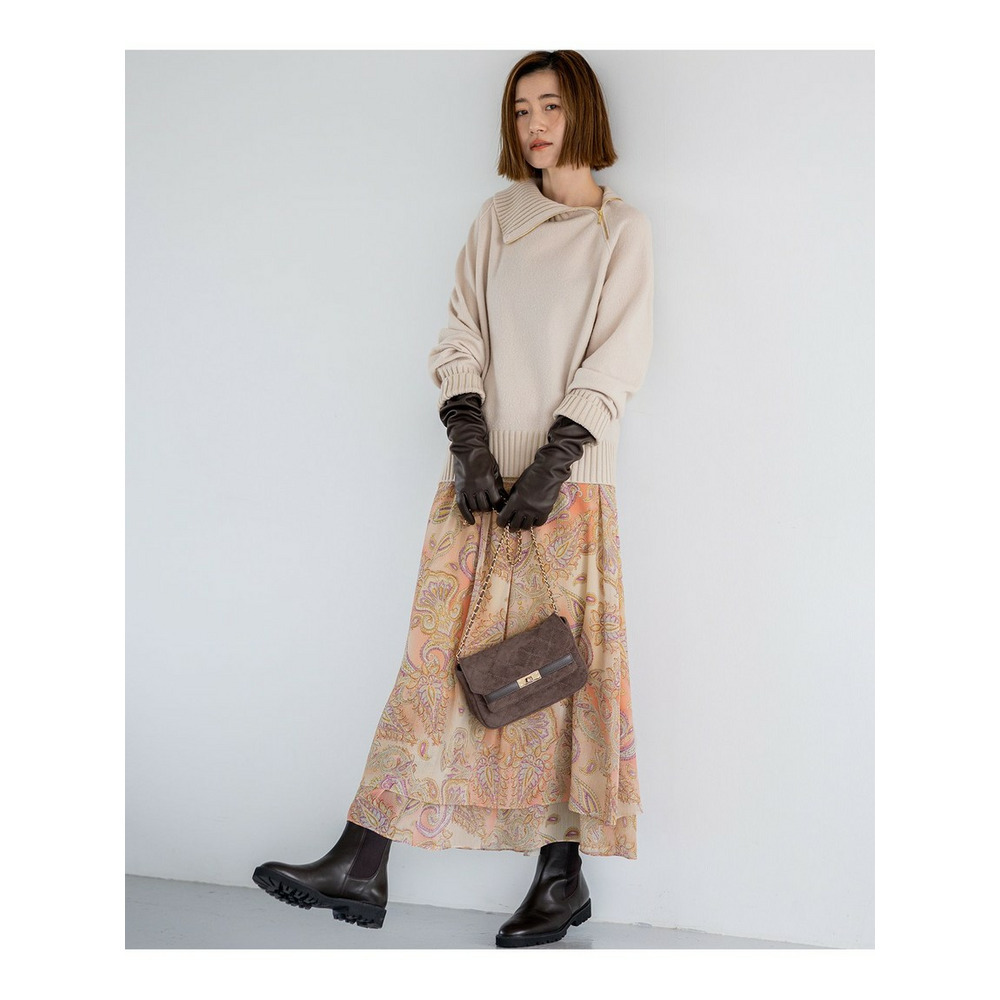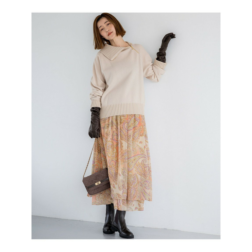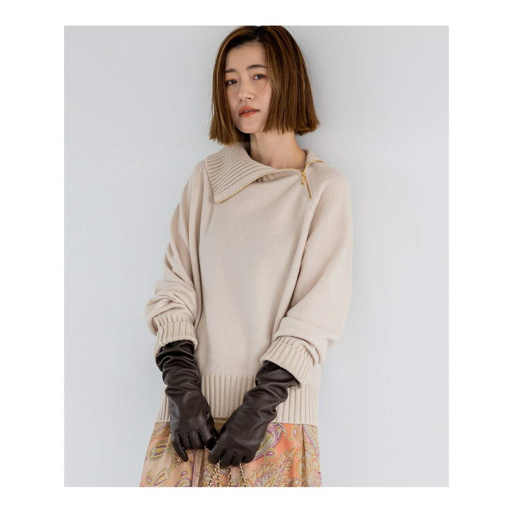 ジップデザインが目を引くタートルニット。アームホールからネックラインにかけて配されたジップは、デザインのアクセントであると同時に、着こなしに変化をもたらします。ファスナーを少し開けてインナーを覗かせたり、抜け感を演出したりと、様々な表情をお楽しみいただけます。襟元、袖口、裾にはふっくらとした厚みのあるバルキーリブを使用し、全体のシルエットにメリハリと上質感をプラスしています。シンプルなパンツやスカートと合わせるだけで、こなれたスタイリングが完成します。オフィスシーンではきれいめパンツと、休日はデニムやワイドパンツやスカートと合わせて、幅広いシーンで活躍します。カラーは、上品で合わせやすい定番のグレー(#004)、やわらかく女性らしい印象を与えるベージュ(#033)、深みがありシックで落ち着いたダークブラウン(#035)、知的で洗練された印象を与える万能なネイビー(#075)の4色展開です。