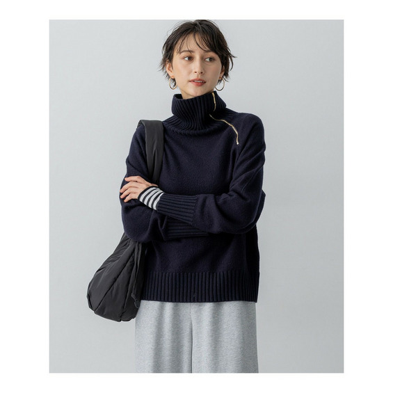 【一部先行予約】ボイルドウールコンビ ジップ タートルニット