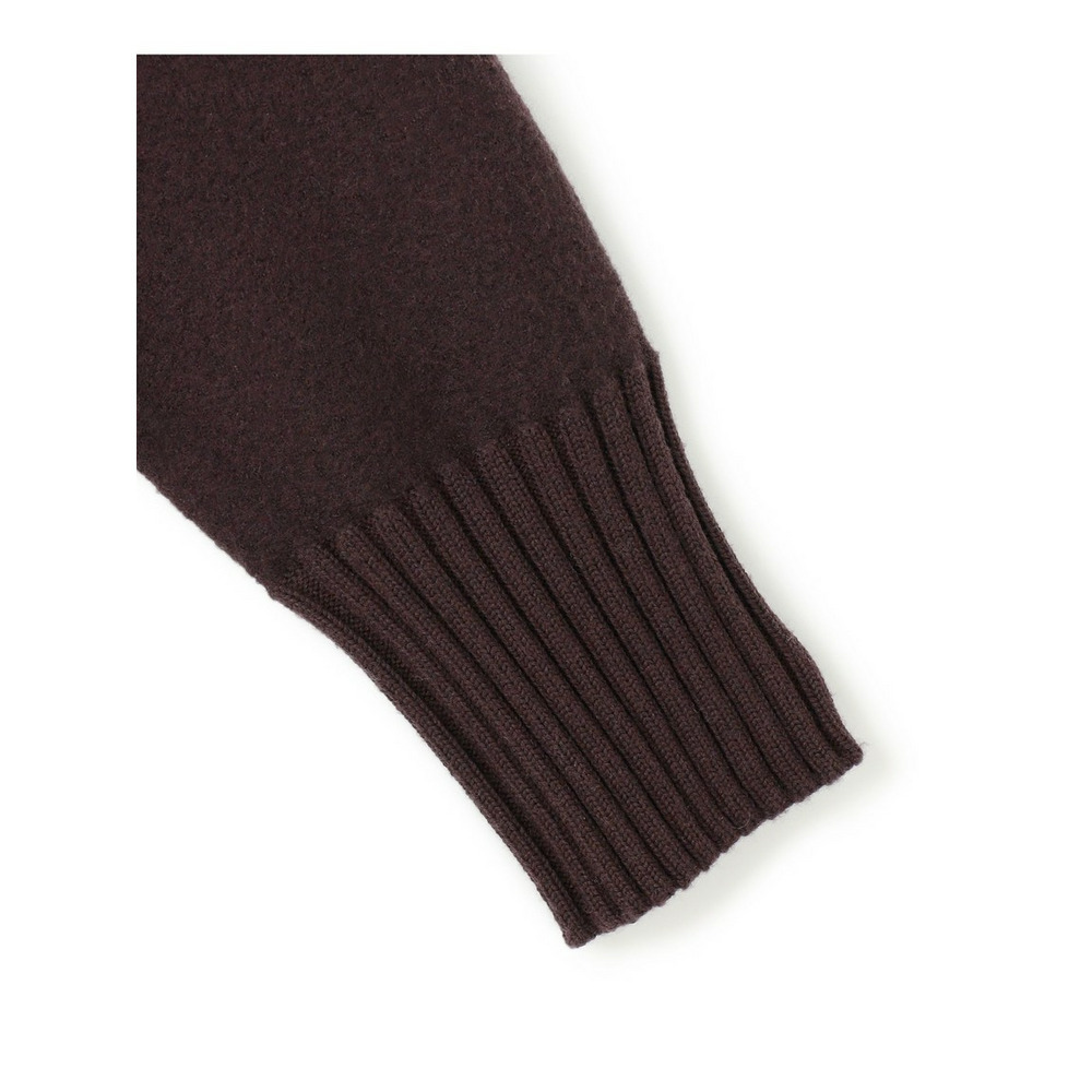 上質な細いウール糸を丁寧に圧縮(ボイルド)加工し、まるでフェルトのようななめらかな質感に仕上げた素材をベースに、ふっくらとした厚みのあるバルキーリブを組み合わせました。細いウール糸を使用することで、圧縮加工を施しても硬くならず、柔らかな肌触りと、ニットならではの豊かな膨らみをキープしています。心地よい伸縮性がありながら、優れた保温性も兼ね備えているため、寒い季節も暖かく快適にお過ごしいただけます。ベースのボイルドウール素材と、表情豊かなバルキーリブのコントラストが、23区らしい天然素材へのこだわりと洗練されたデザイン性を感じさせます。