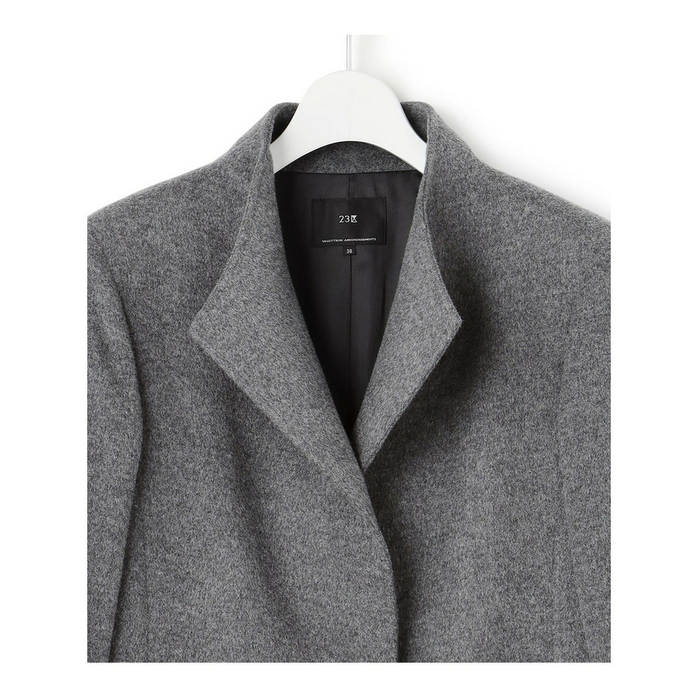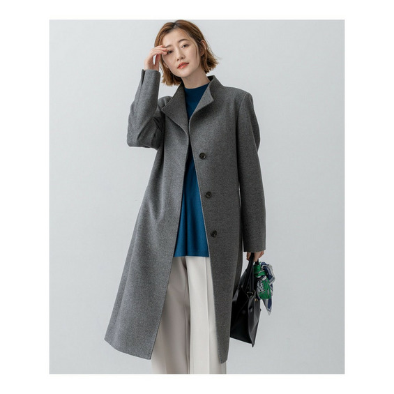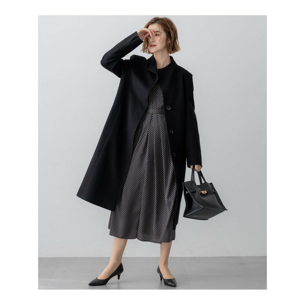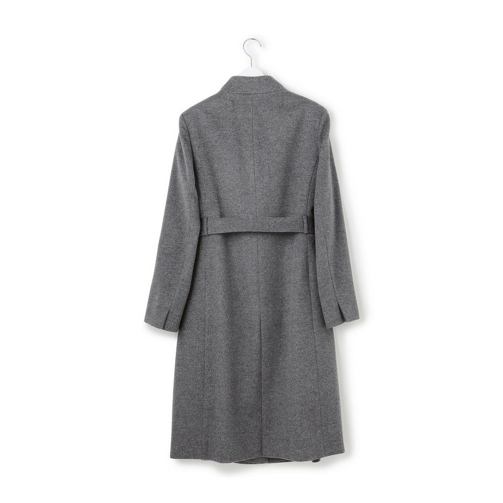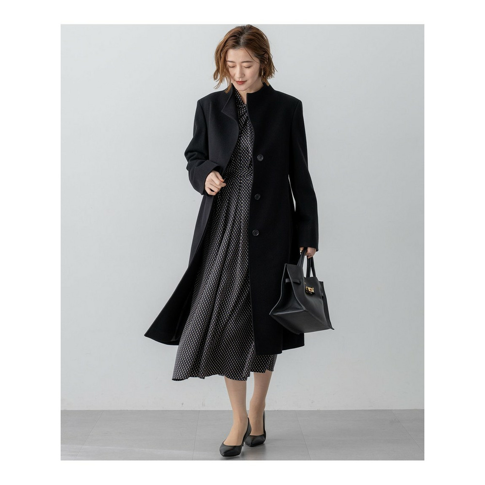 首周りをすっきりと仕上げたスタンドカラーコート。セットインスリーブと4面で立体的に構築した美しいシルエットで、きちんと感のある上品できれいめなコートに仕上げています。スタンドカラーは釦を開けても閉めても決まる2WAYデザインです。ウエストには共布のサッシュベルトをつけて、華やかさをプラスしました。スカートやパンツはもちろんワンピースとも相性抜群な丈感で、秋冬のきれいめスタイリングが叶うアウターです。日常使いから通勤、ちょっとしたおでかけの時まで、あらゆるシーンで着用いただけます。カラーは、都会的な印象のグレー(#004)と、スタイリッシュなブラック(#005)の2色展開です。