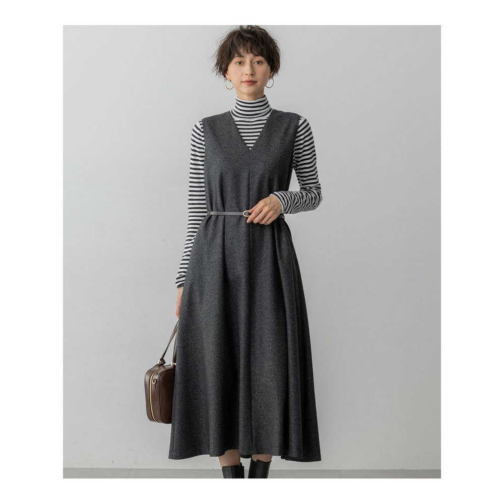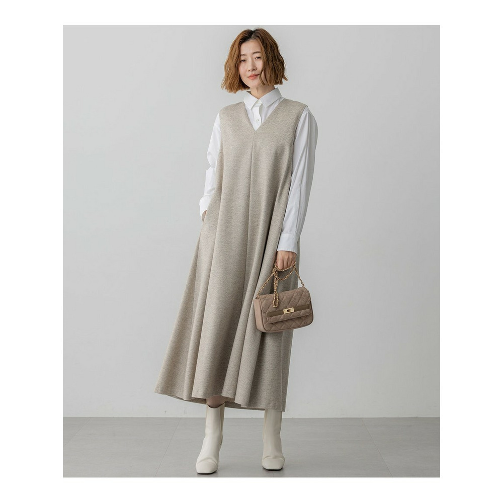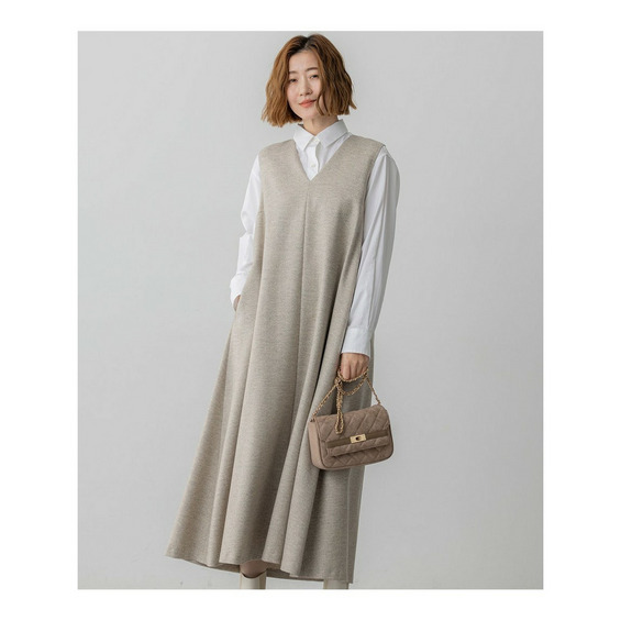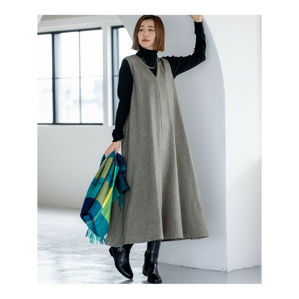 やや深めのVネックにノースリーブデザインのフレアワンピース。中に合わせるインナーとのスタイリングで気温に合わせて着回しを楽しんでいただけます。深めのVネックと後ろに入れたタックがアクセントに。タックから広がるフレアラインがさりげなく洒落感を加えます。カジュアルスタイルに映えるモノトーン(#305)、印象を引き締めてくれるチャコール(#304)、やさしい雰囲気のベージュ(#333)の3色展開です。