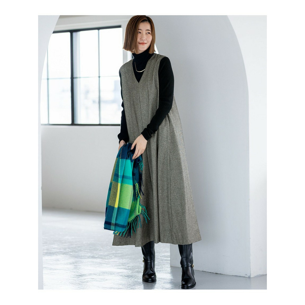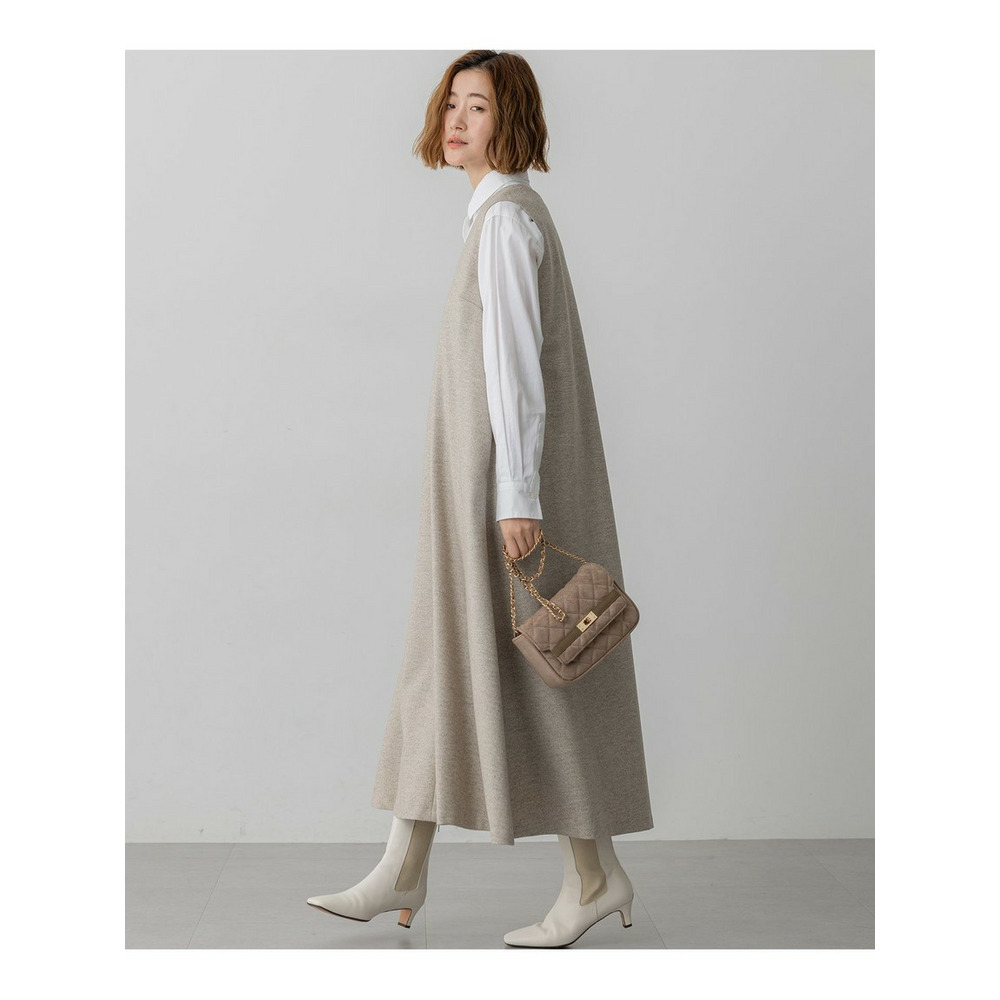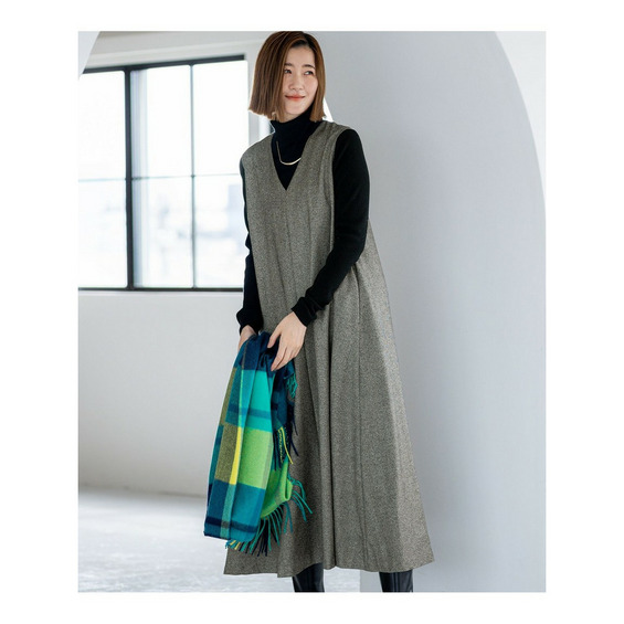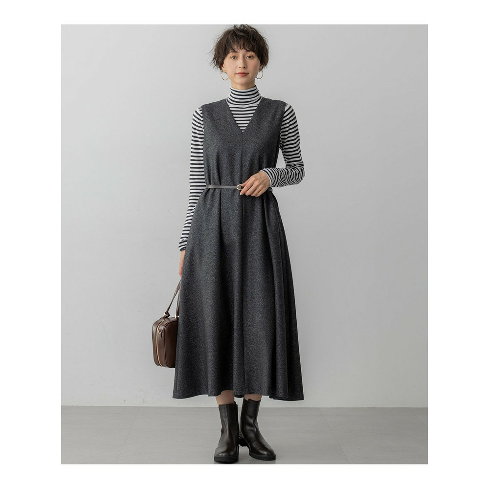 やや深めのVネックにノースリーブデザインのフレアワンピース。中に合わせるインナーとのスタイリングで気温に合わせて着回しを楽しんでいただけます。深めのVネックと後ろに入れたタックがアクセントに。タックから広がるフレアラインがさりげなく洒落感を加えます。カジュアルスタイルに映えるモノトーン(#305)、印象を引き締めてくれるチャコール(#304)、やさしい雰囲気のベージュ(#333)の3色展開です。