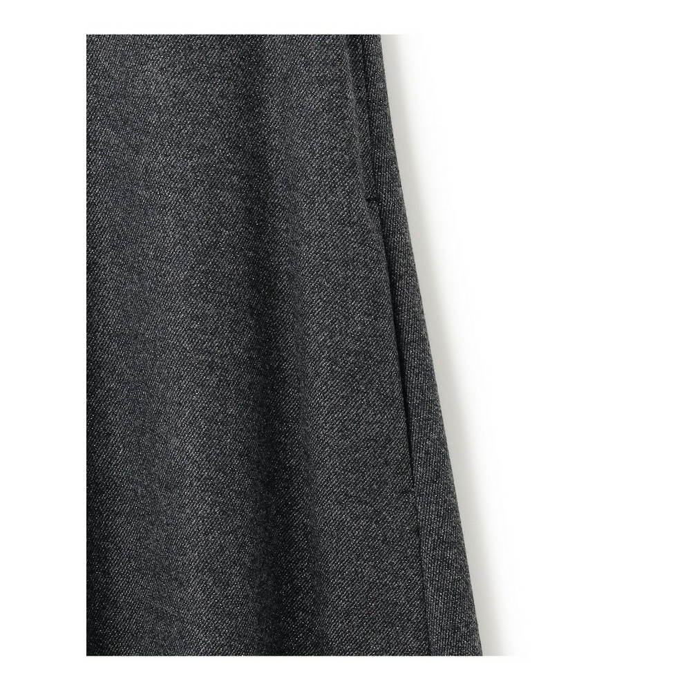 素朴さのあるホームスパン素材に、微光沢感をプラスしてシックに仕上げました。さらにラメ混にすることで、エレガントさとトレンド感のある素材になります。独特のムラのある風合いを表現する為に、微光沢感のあるレーヨンにウールを巻き付けたタテ糸を使用。ヨコ糸にはウールとポリウレタンを使用してストレッチ性を出すことで着心地の良い素材に仕上げています。