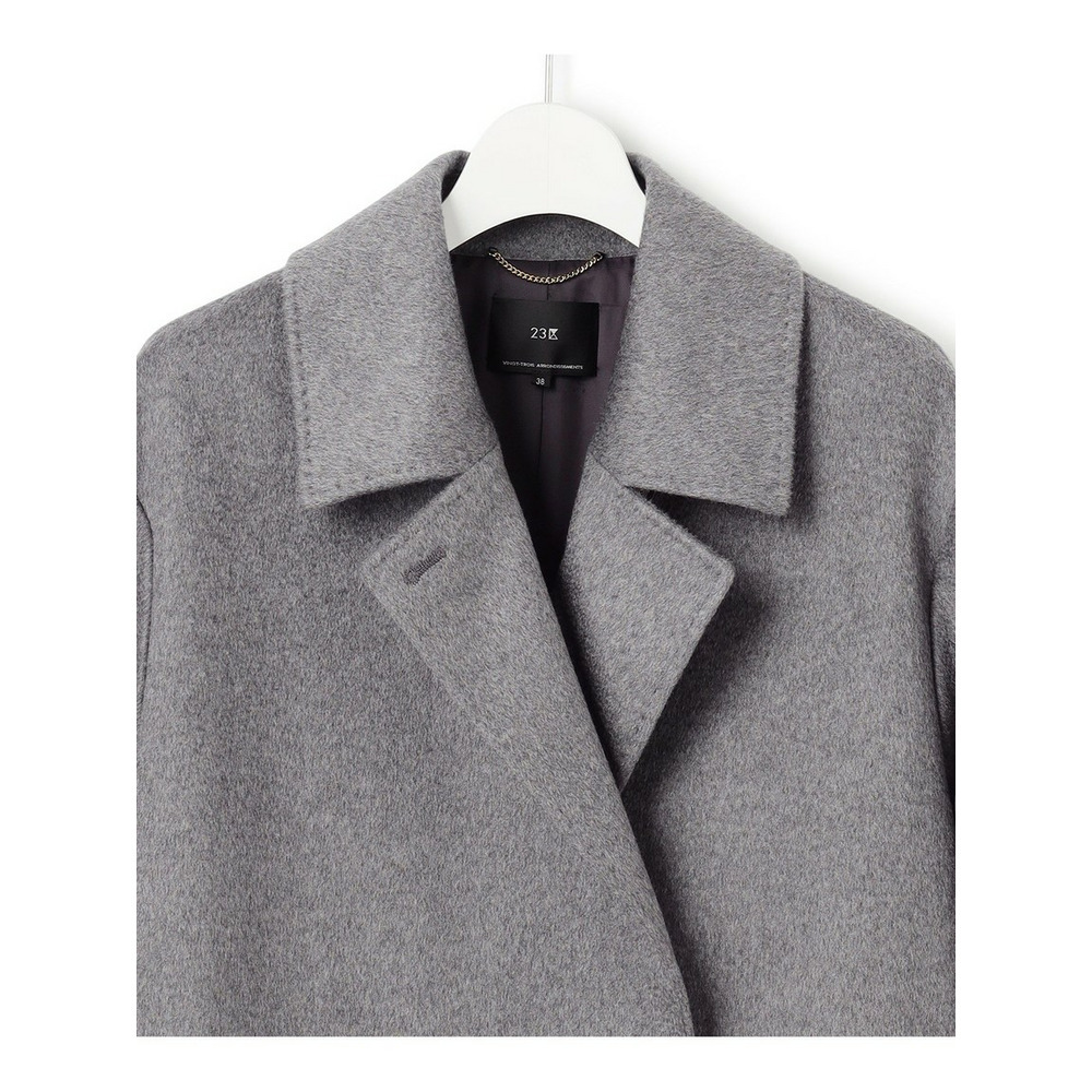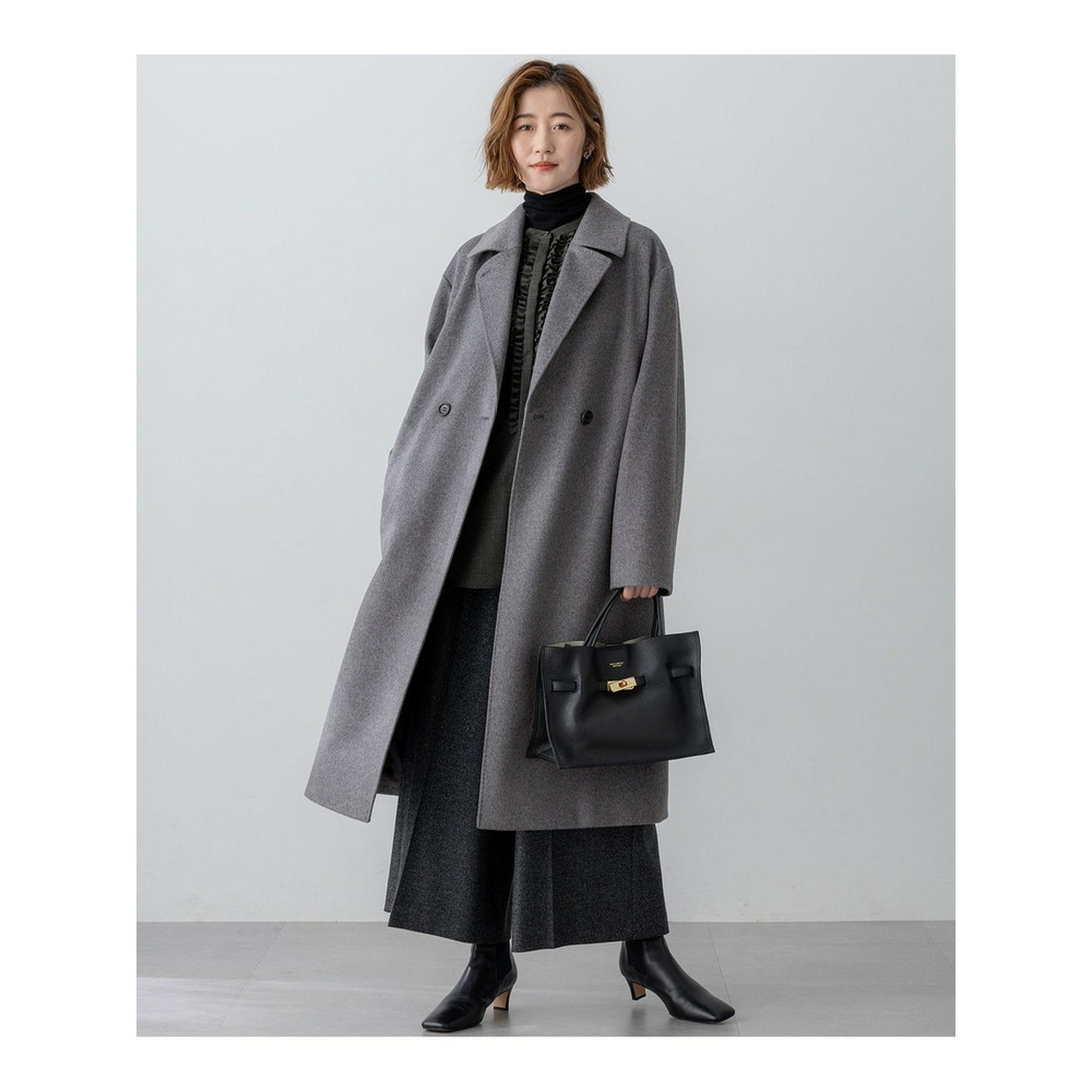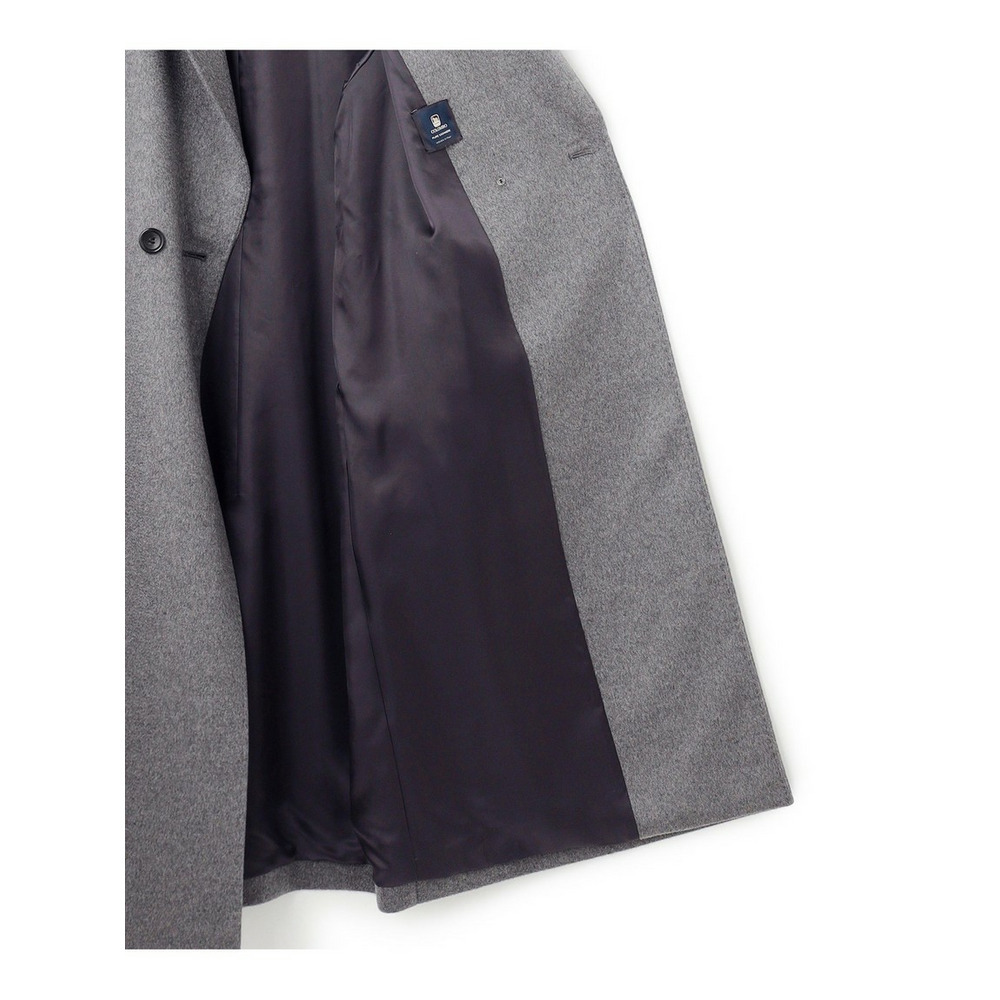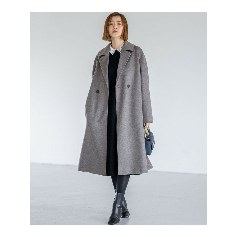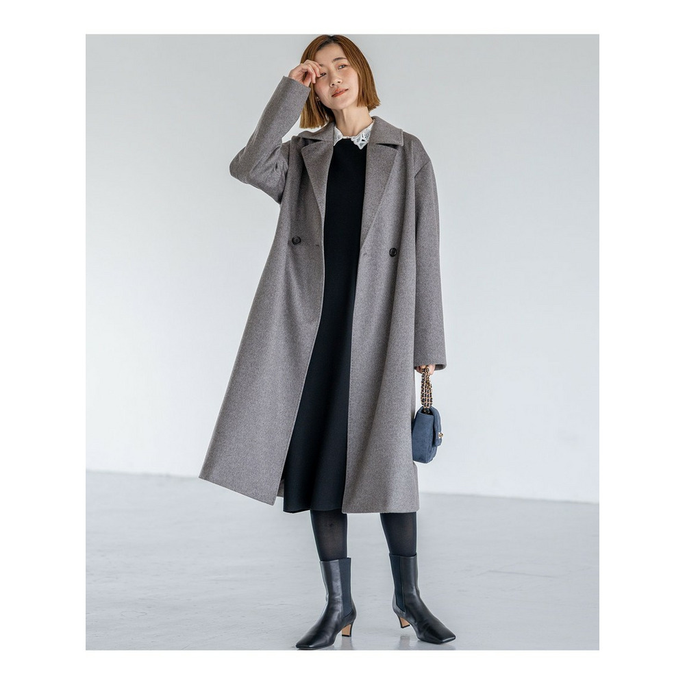 イタリア「COLOMBO」社の高級カシミヤ100%素材を使用したコート。素材の上質さを活かすため、シンプルかつエレガントなデザインのダブルフロントのチェスターコートにし、羽織るだけで決まるように仕上げました。カシミヤ100%の滑らかな表面感や肌触りを楽しんでいただきたい1枚です。カラーは、上品なグレー(#004)と、重厚感のあるブラック(#005)の2色展開です。