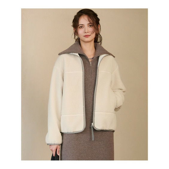 柔らかく、軽い着心地と暖かさが魅力のエコファーブルゾンです。ゆとりのあるサイズ感で、厚手のニットやスウェットの上にもストレスなく羽織っていただけます。いつものコーディネートにプラスするだけで、こなれ感のある大人カジュアルな着こなしが完成。ベロアニットのセットアップに羽織ってリュクスな雰囲気に、ミリタリーボトムとニットのスタイルに合わせてカジュアルダウンするなど、幅広いシーンで活躍します。カラーは、落ち着いた印象のブラウン系(#030)と、柔らかなアイボリー系(#002)の2色展開です。