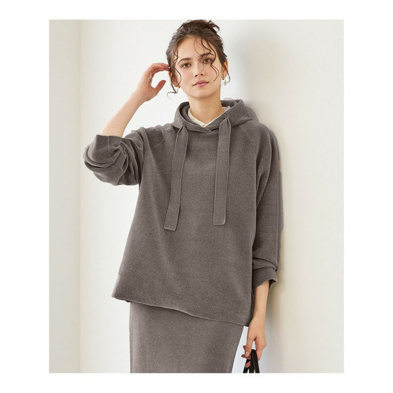 上品な光沢と柔らかな肌触りが特徴の素材を使用し、存在感がありながらも軽やかな着心地を実現。大人のカジュアルスタイルをワンランクアップさせるアイテムとして活躍します。 ゆったりとしたオフボディのシルエットは、体型を拾いにくく、リラックス感のある着心地を叶えます。フードと、ワイドなドロストリングテープがデザインのアクセントとなり、カジュアルな中にも洗練された印象を与えます。同素材のスカートとセットアップで着用すれば、より一層洗練された印象に。休日のリラックススタイルから、ちょっとしたお出かけまで、様々なシーンで活躍します。カラーは、着回し力抜群のブラック(#005)と、温かみがあり肌なじみの良いブラウン(#030)の2色展開です。