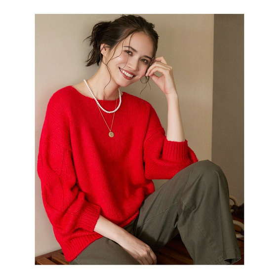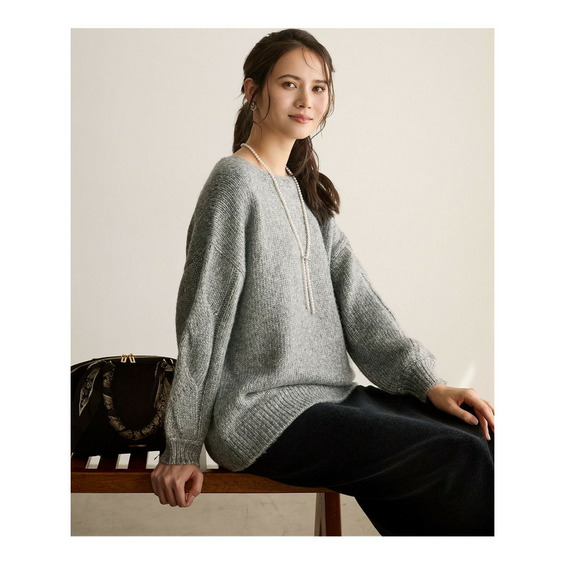■素材イギリス産のウールを混合した、温かみのある素材です。特殊な技術でリリヤーンの中にウールを吹き込んだ「エアーフローヤーン」を採用。見た目にはしっかりとした厚みがあるのに、驚くほど軽い着心地を実現しています。ほんのりとした上品な光沢感も特徴で、カジュアルながらも洗練された印象を与えます。
