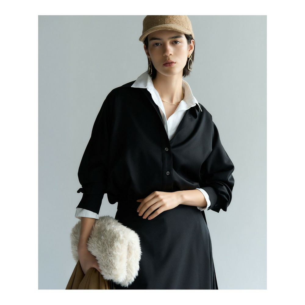 【洗える】メリノウールサテン 2WAYドルマンスリーブシャツ