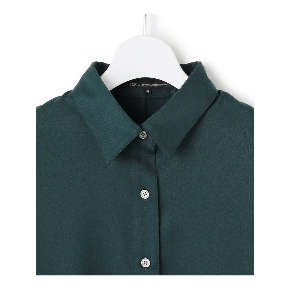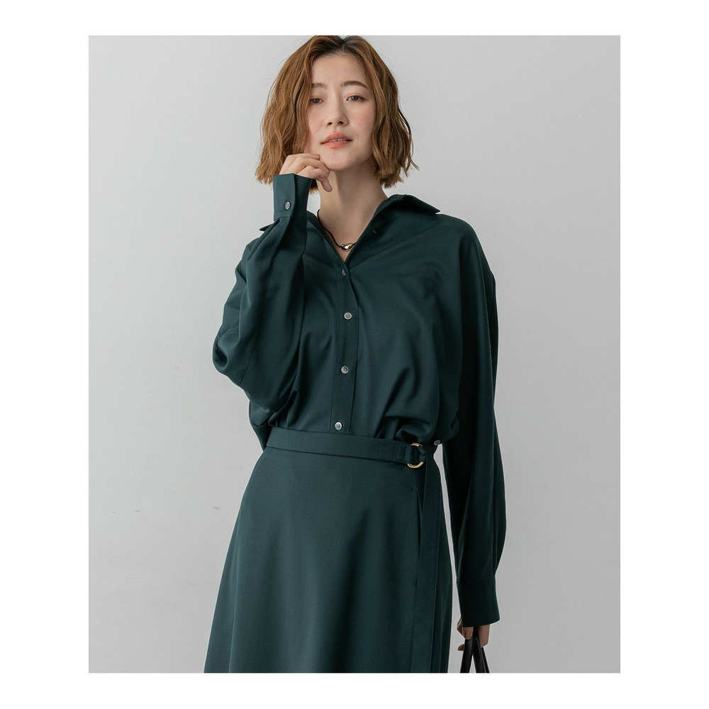 肩から袖にかけてゆったりとしたシルエットが特徴のドルマンスリーブシャツです。リラックス感がありながらも上品な印象を与え、気になる体型をさりげなくカバーしてくれます。脇に配されたボタンを留めることで、カシュクール風の着こなしもお楽しみいただける2WAY仕様です。一枚でさらりと着るのはもちろん、同素材のスカートと合わせてセットアップ風に着用すれば、より洗練された印象に。きれいめパンツと合わせてオフィススタイルに、デニムやスニーカーと合わせてカジュアルダウンするなど、幅広いシーンで活躍し、大人の女性の着こなしを上品に彩ります。カラーはシックで上品な印象を与えるブラック(#005)、深みのある落ち着いたグリーン(#064)の2色展開です。