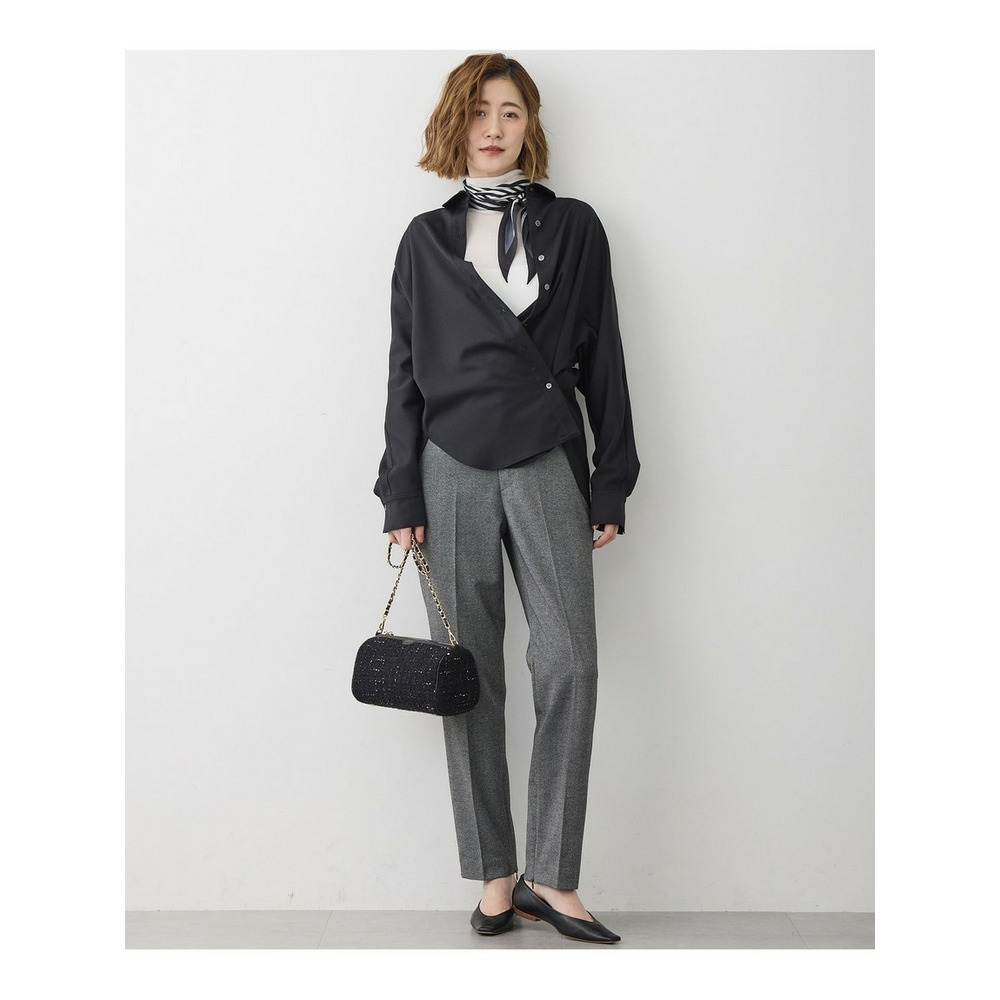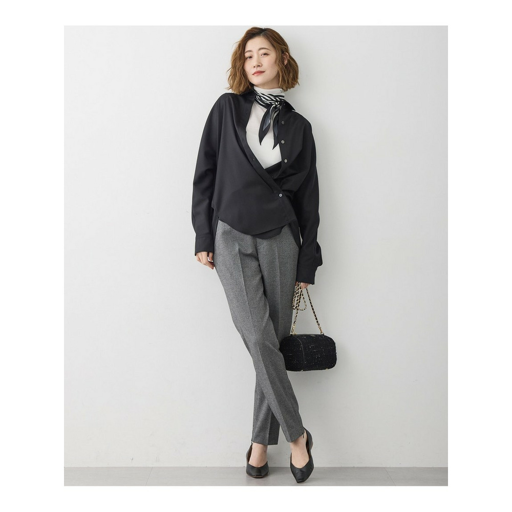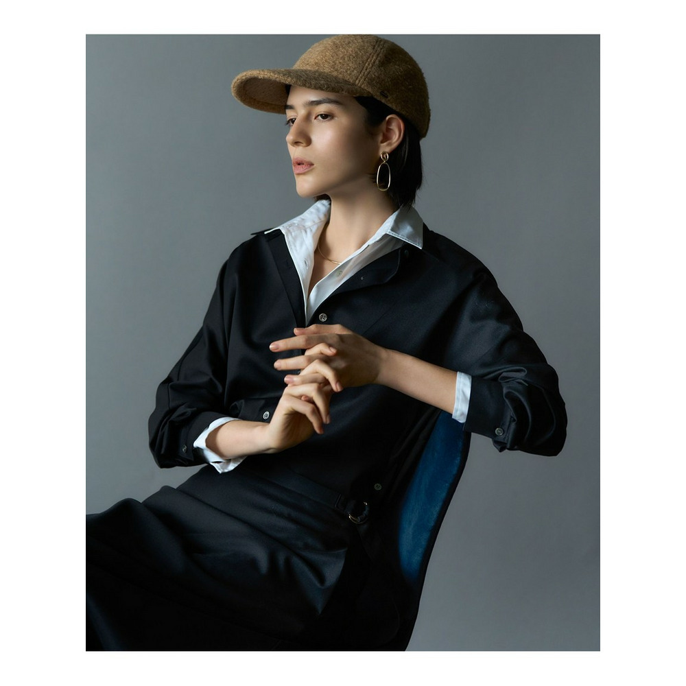 オーストラリア産メリノウールを贅沢に使用した、23区別注の上質なウール素材です。光沢感のある織り方で仕上げており、通常のウールよりも非常に細い糸を使うことで、なめらかで美しい表面感と、深みのある豊かな発色が特徴です。 さらに、特殊なポリエステル繊維を組み合わせることで、快適なストレッチ性を実現しました。動きやすく、ストレスフリーな着心地を叶えます。 静電気を抑える特殊な糸もブレンドしているため、ほこりや毛が付きにくく、いつでも清潔感を保ちやすいのも嬉しいポイントです。