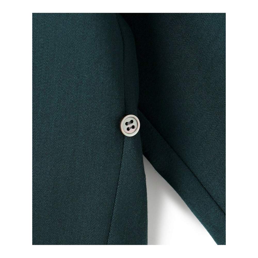 オーストラリア産メリノウールを贅沢に使用した、23区別注の上質なウール素材です。光沢感のある織り方で仕上げており、通常のウールよりも非常に細い糸を使うことで、なめらかで美しい表面感と、深みのある豊かな発色が特徴です。 さらに、特殊なポリエステル繊維を組み合わせることで、快適なストレッチ性を実現しました。動きやすく、ストレスフリーな着心地を叶えます。 静電気を抑える特殊な糸もブレンドしているため、ほこりや毛が付きにくく、いつでも清潔感を保ちやすいのも嬉しいポイントです。