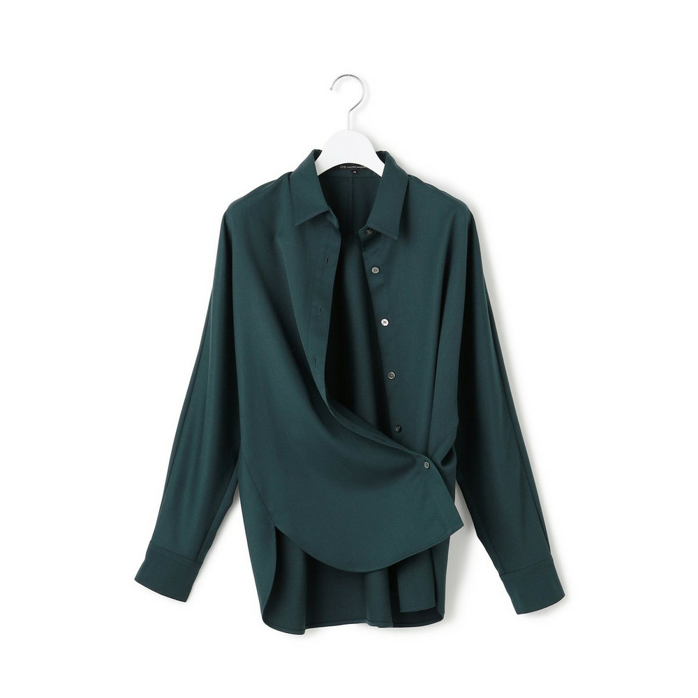 肩から袖にかけてゆったりとしたシルエットが特徴のドルマンスリーブシャツです。リラックス感がありながらも上品な印象を与え、気になる体型をさりげなくカバーしてくれます。脇に配されたボタンを留めることで、カシュクール風の着こなしもお楽しみいただける2WAY仕様です。一枚でさらりと着るのはもちろん、同素材のスカートと合わせてセットアップ風に着用すれば、より洗練された印象に。きれいめパンツと合わせてオフィススタイルに、デニムやスニーカーと合わせてカジュアルダウンするなど、幅広いシーンで活躍し、大人の女性の着こなしを上品に彩ります。カラーはシックで上品な印象を与えるブラック(#005)、深みのある落ち着いたグリーン(#064)の2色展開です。