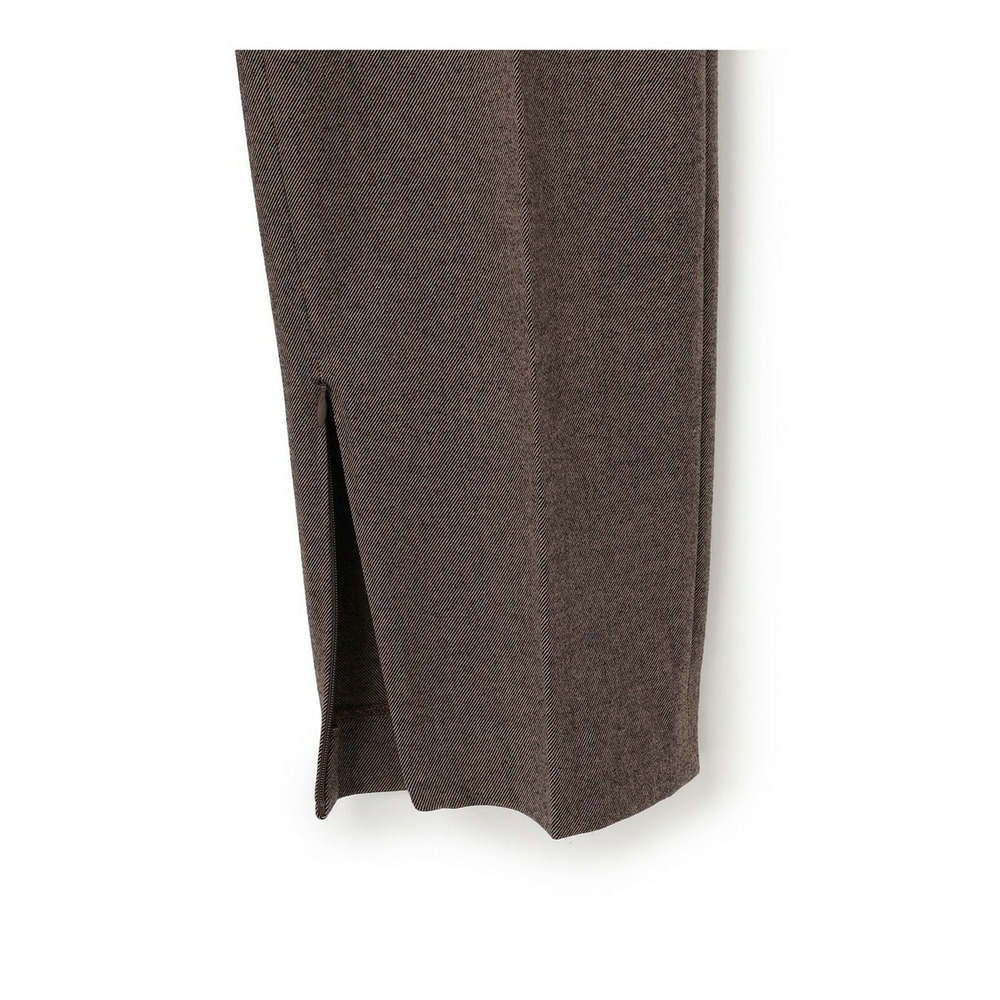 フロントはセンタープレスが入った、スッキリと細身の美シルエットテーパードパンツ。ウエストの後ろにはゴムが入っているのでストレスフリーな穿き心地に。裾のファスナーを開けるとフレアパンツのようなシルエットにもなり、着こなしの幅が広がります。ファスナーを開けてショートブーツと合わせた足元のスタイリングもおすすめ。1枚で2WAY着用可能な着回し力抜群のパンツです。カラーは、シックな印象のブラック(#005)と、トレンドのダークブラウン(#335)、スタイリングしやすいグレー(#305)3色展開です。