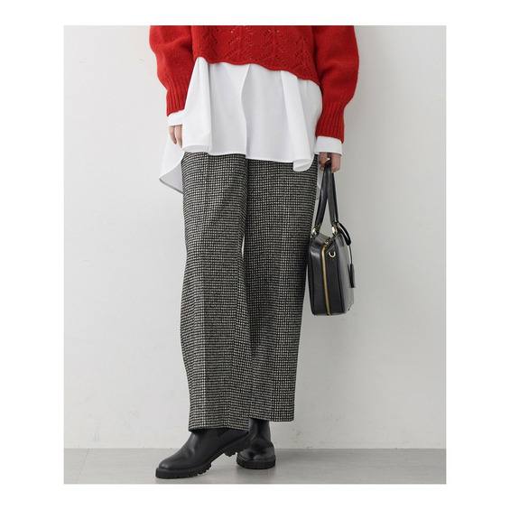 秋冬を彩る、上品な千鳥柄のワイドパンツ
