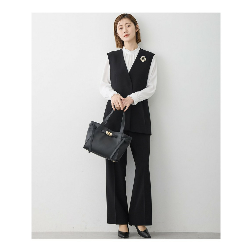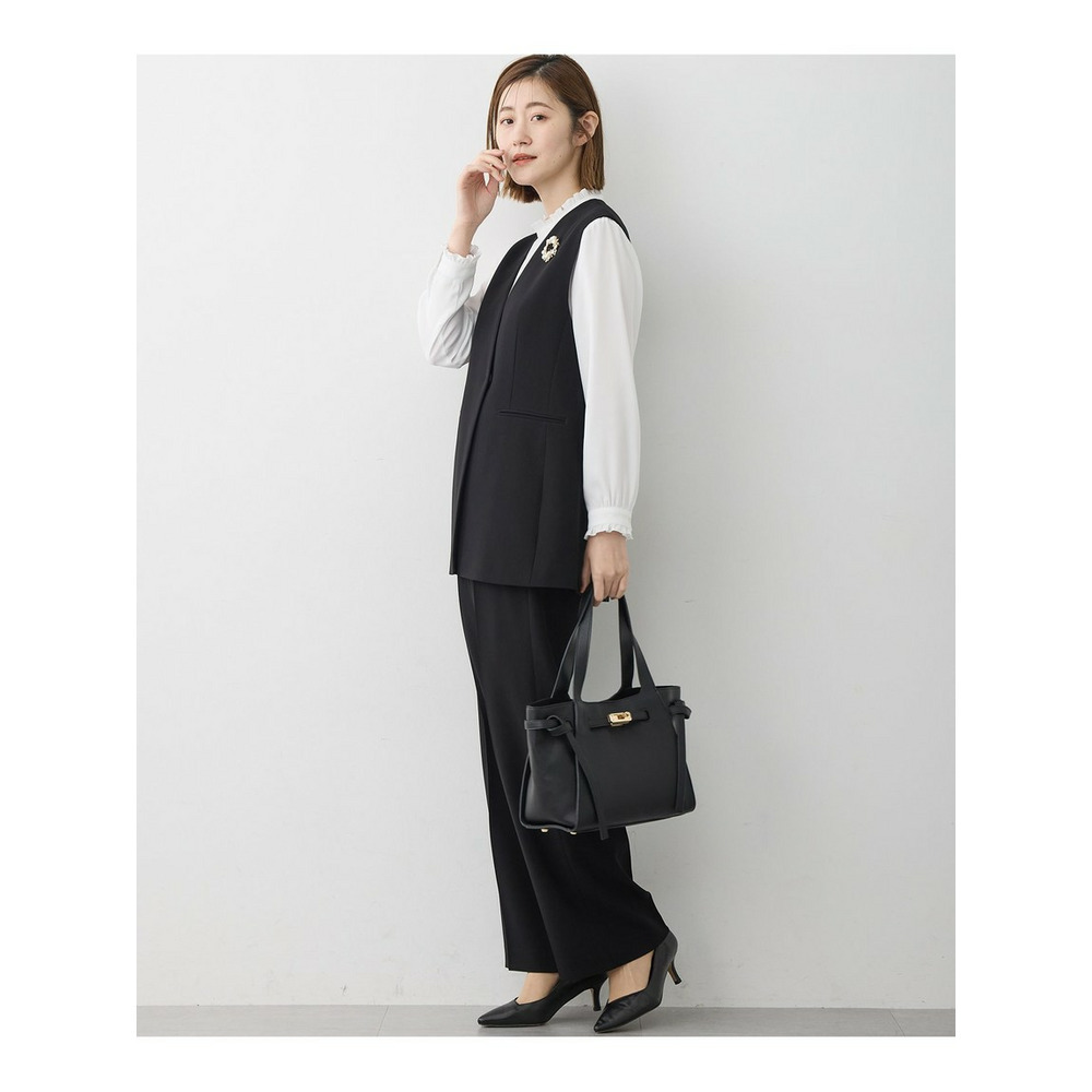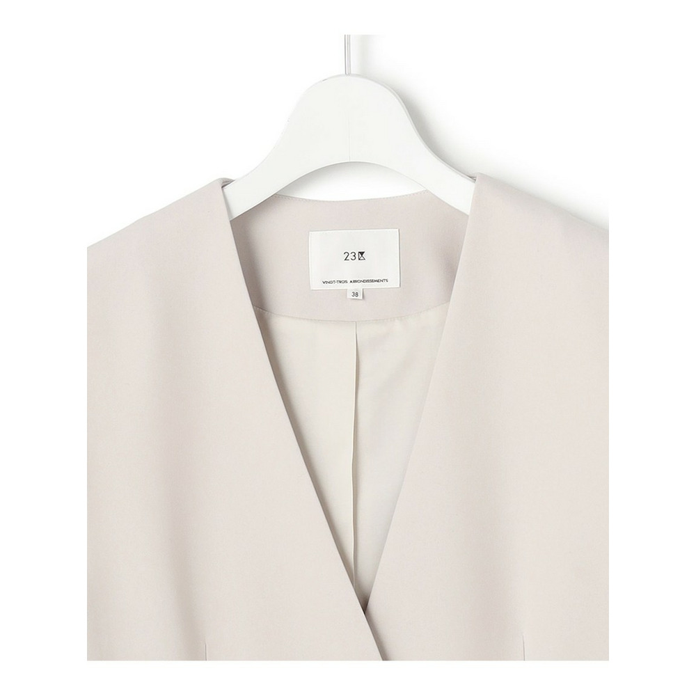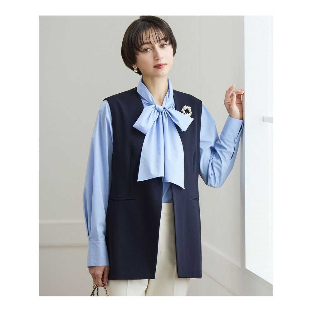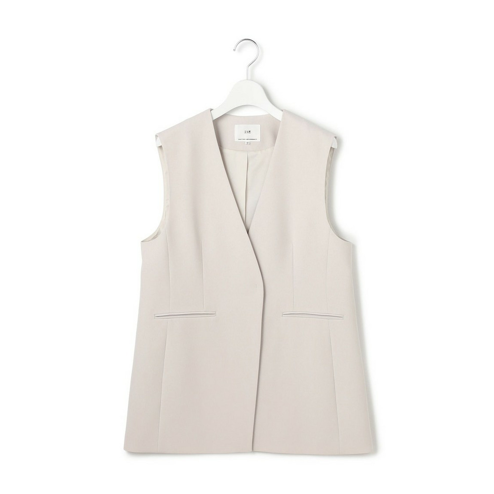 23区定番素材で作るシンプルなジレ。トレンド感のあるボクシーなシルエットデザインに仕上げました。テーパードパンツでも、ワイドパンツでもバランスが良く、合わせやすいレングスにこだわっています。セレモニーだけでなく、通勤時などきれいめなスタイルをアップデートしてくれる新しい1枚です。同素材のパンツと合わせたらスタイリッシュな印象に、ブローチなどを足していただくとより華やかな雰囲気に、と様々なスタイリングの幅を楽しんでいただけます。カラーは明るくやさしい印象で、顔周りを華やかに見せてくれるベージュ(#033)、合わせやすく落ち着いた色合いで、上品なきちんと感を演出するネイビー(#075)、洗練された印象を与える定番カラーで、どんなシーンにも対応できる万能色ブラック(#005)の3色展開です。
