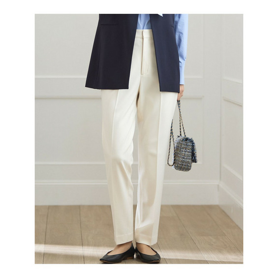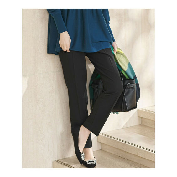 きれいなラインにこだわったテーパードパンツです。センタープレスが縦のラインを強調し、美しいシルエットを演出します。裾に向かって緩やかに細くなるテーパードデザインは、足首をすっきりと見せてくれるため、体型を問わずバランス良く着こなしていただけます。オフィスシーンではきちんと感を、オフの日にはリラックス感を演出し、どんなトップスにも合わせやすい万能な一本です。ウエストの後ろ部分にはゴムを施し、締め付け感なくストレスフリーな穿き心地を実現しました。豊富なサイズ展開で、お客様一人ひとりにぴったりの1本を見つけていただけます。カラーは、上品で柔らかな印象のベージュ(#033)、着回し力抜群の定番ブラック(#005)、シックで洗練された雰囲気のグレー(#004)の3色展開です。