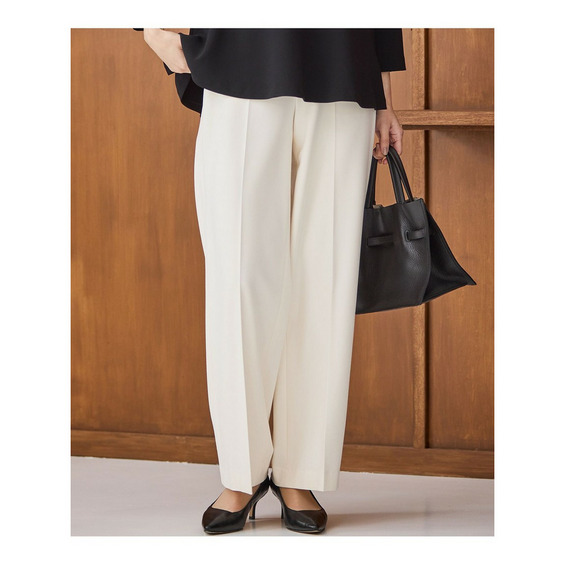 腰周りはすっきりと見せつつ、脚のラインを優雅にカバーしてくれる程よいワイドシルエットが魅力のパンツです。体型を問わず、どなたにもバランス良く着用いただけるように計算されたデザインで、穿くだけで洗練された印象を与えます。どんなトップスにも合わせやすく、オフィスでのきちんとスタイルから、休日のデイリーカジュアルまで、シーンを選ばずに活躍する万能アイテムです。カラーは、上品で柔らかな印象のベージュ(#033)、着回し力抜群の定番ブラック(#005)、シックで洗練された雰囲気のグレー(#004)の3色展開です。
