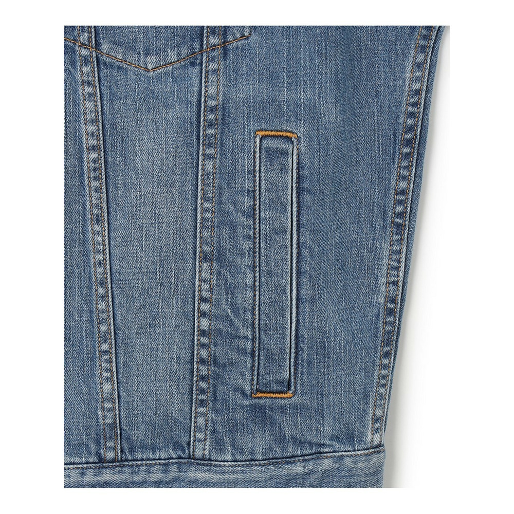 袖にボリュームを出したデザインデニムジャケット。少し大きめのサイズ感と、タックディティールを入れた袖がポイントです。裾にいれたシンチバック(尾錠)がバックスタイルのアクセントになっており、アジャストもしていただける仕様になっています。同素材のパンツと合わせていただくことで、こなれた印象のスタイリングに仕上がります。カラーは、シックでモダンな印象のグレー(#003)、爽やかで着こなしやすいライトブルー(#071)、程よいウォッシュで深みを残したミッドブルー(#074)、きれいめな印象のネイビー(#075)の4色展開です。