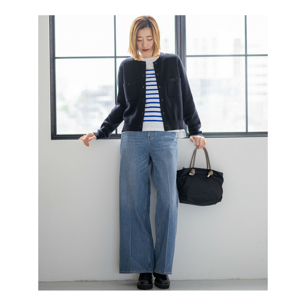 23区とREDCARDTOKYOの特別なコラボレーションから、大人の女性にふさわしい洗練されたワイドデニムが登場しました。脚のラインを拾わないゆったりとしたワイドシルエットに、センタープレスを施すことで、カジュアルなデニムながらもすっきりとしたきれいめな印象を演出します。穿くだけでこなれ感と上品さを兼ね備えたスタイリングが完成し、幅広いシーンで活躍する着回し力抜群の一本です。 カラーは、シックでモダンな印象のグレー(#003)、爽やかで着こなしやすいライトブルー(#071)、程よいウォッシュで深みを残したミッドブルー(#074)、きれいめな印象のネイビー(#075)の4色展開です。