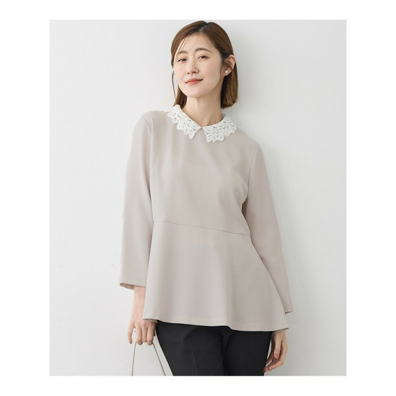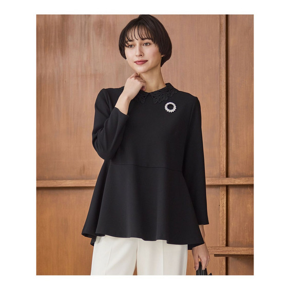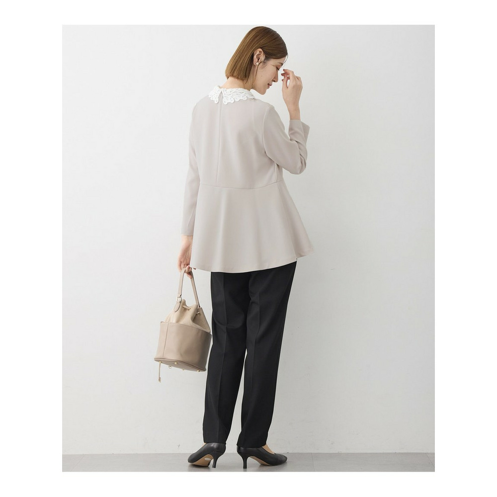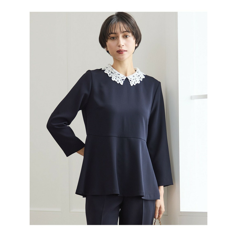 【セットアップ対応/洗える】トリアセダブルジョーゼット 2WAYレース襟 ペプラムブラウス