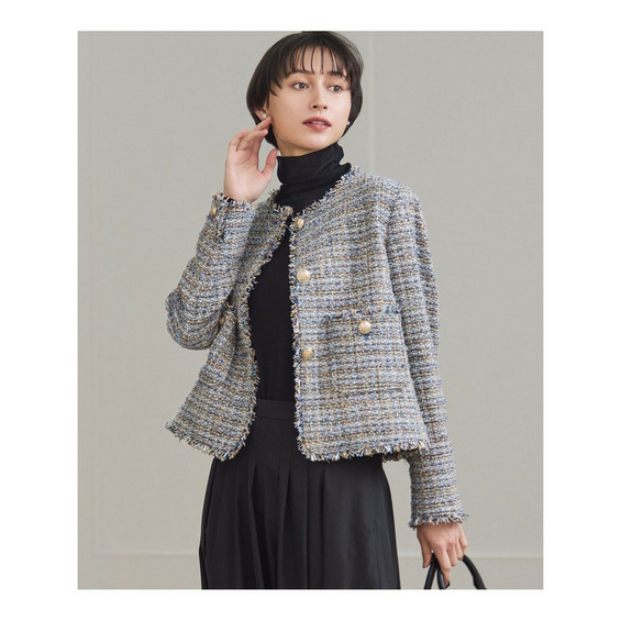 多彩な表情感が華やぐ、フロントボタンツイードジャケット