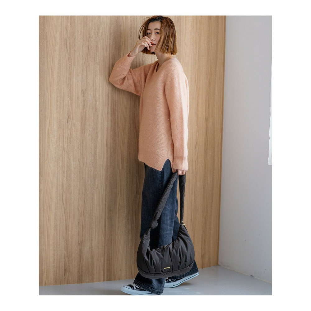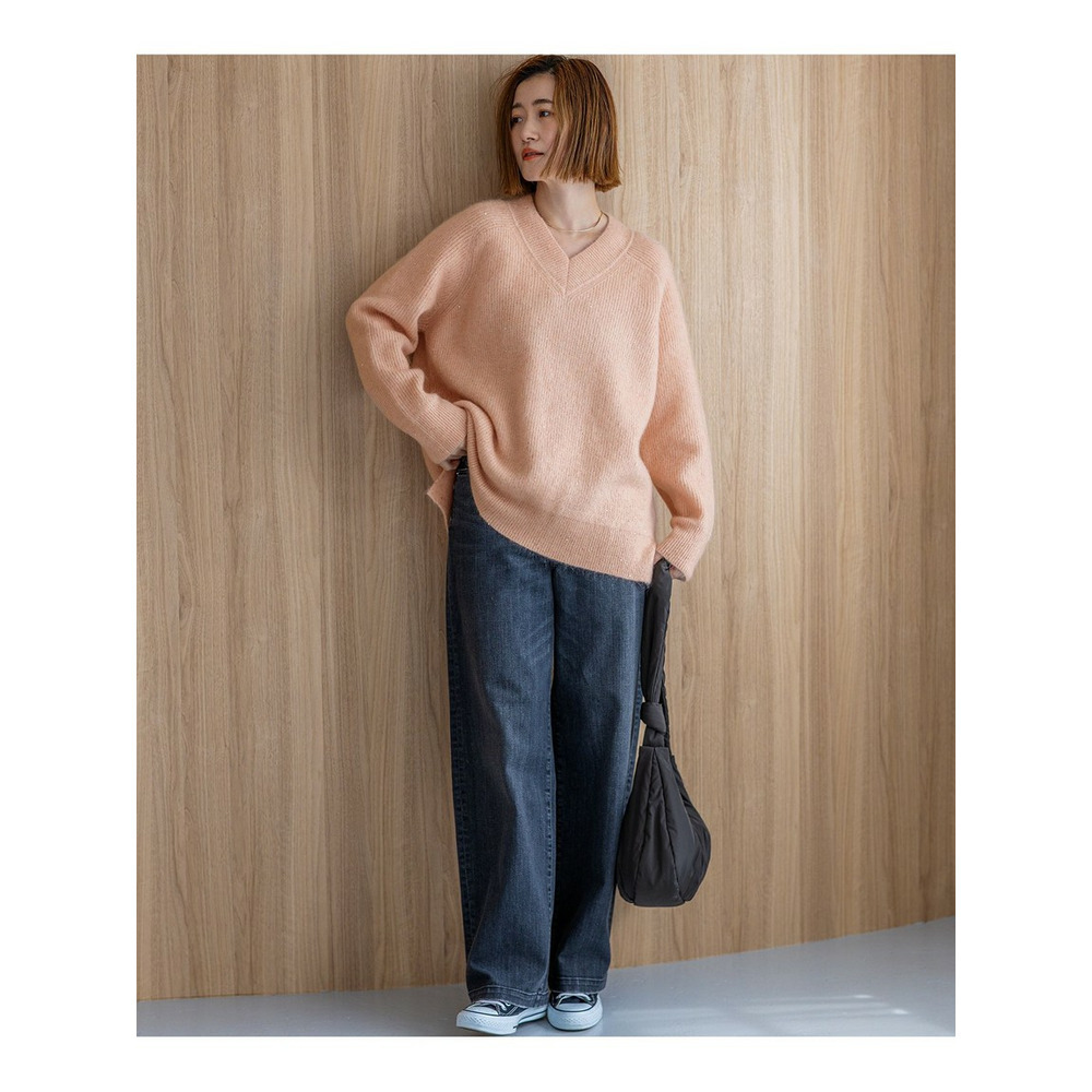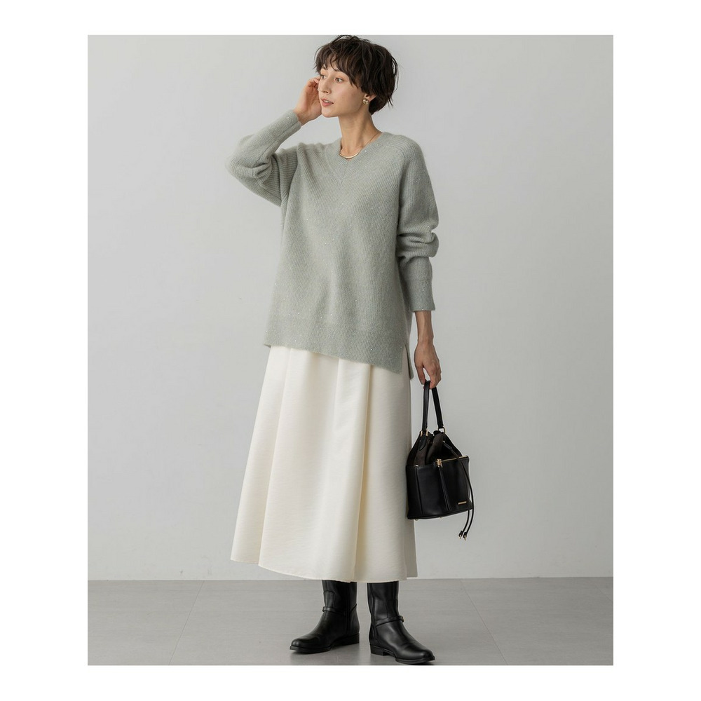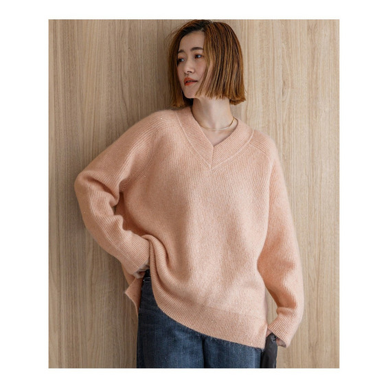 たっぷりと贅沢なボリューム感に仕上げたVネックニット。凹凸のある畦編みは、気になるボディラインをカバーし、着るだけでこなれた印象を与えます。少し後ろに抜いて着ていただくと、女性らしい抜け感と立体的なシルエットが生まれ、より洗練された着こなしをお楽しみいただけます。華やかな素材感が魅力なので、シンプルなボトムスに合わせるだけで、アクセサリーなしでも十分主役になる一枚です。待ち遠しい春を感じさせるような、やさしいカラー展開で、顔色を明るく見せる可憐なピンク(#012)、上品で合わせやすいライトグレー(#003)、爽やかで洗練された印象のライトグリーン(#062)の3色展開です。