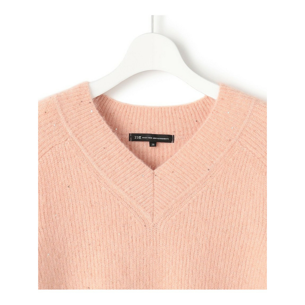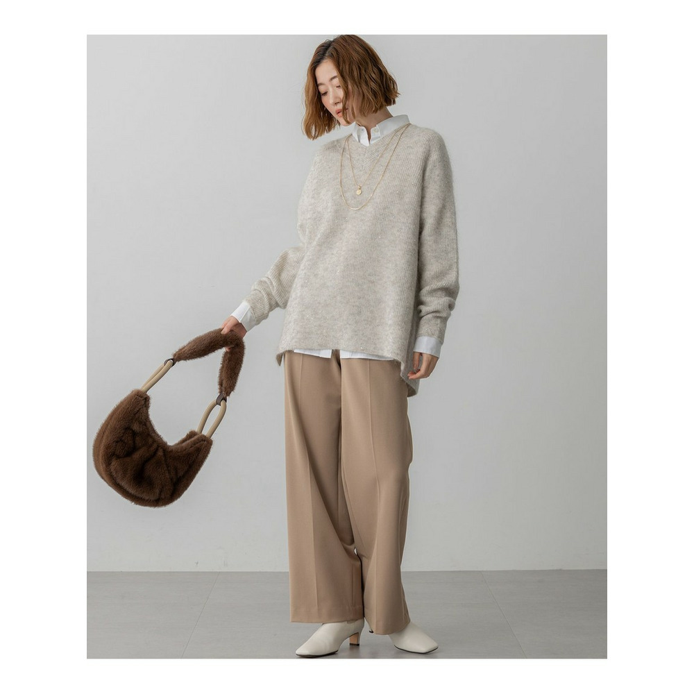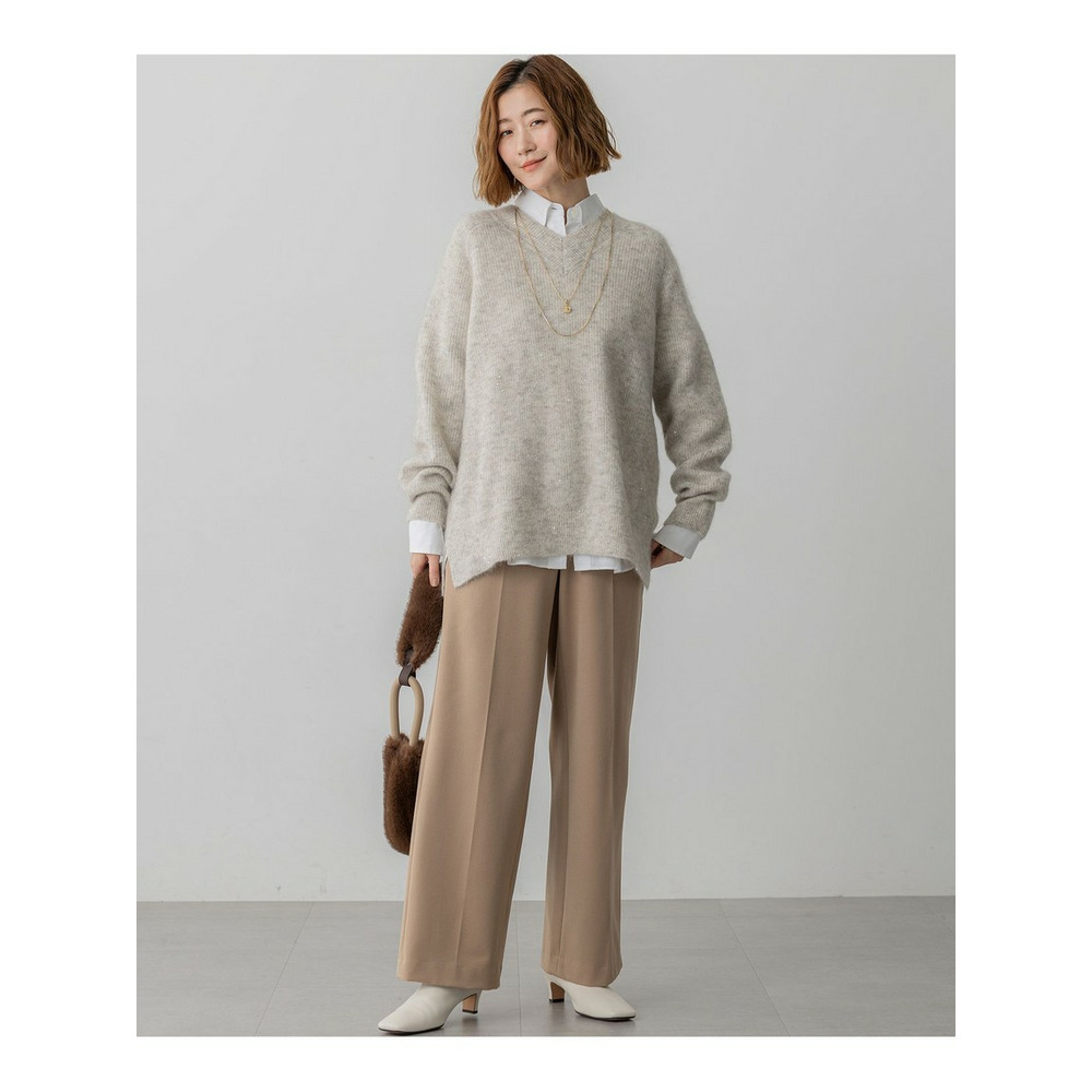 たっぷりと贅沢なボリューム感に仕上げたVネックニット。凹凸のある畦編みは、気になるボディラインをカバーし、着るだけでこなれた印象を与えます。少し後ろに抜いて着ていただくと、女性らしい抜け感と立体的なシルエットが生まれ、より洗練された着こなしをお楽しみいただけます。華やかな素材感が魅力なので、シンプルなボトムスに合わせるだけで、アクセサリーなしでも十分主役になる一枚です。待ち遠しい春を感じさせるような、やさしいカラー展開で、顔色を明るく見せる可憐なピンク(#012)、上品で合わせやすいライトグレー(#003)、爽やかで洗練された印象のライトグリーン(#062)の3色展開です。