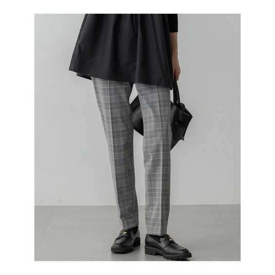 センタープレスが縦のラインを強調し、脚を美しく見せてくれるテーパードパンツです。裾に向かって緩やかに細くなるシルエットは、どんな体型の方にもすっきりと洗練された印象を与えます。上品なチェック柄が、シンプルなトップスと合わせるだけで着こなしに奥行きと華やかさをプラス。ブラウスと合わせてオフィススタイルに、ニットやカットソーと合わせてデイリーカジュアルにと、幅広いシーンで活躍してくれます。ウエストの後ろ部分にはゴムを施し、見た目の美しさとストレスフリーな穿き心地を両立させました。豊富なサイズ展開をご用意しておりますので、ご自身にぴったりの一本を見つけていただけます。 カラーは、落ち着いたトーンで着回し力抜群のグレーチェック(#304)の1色展開です。