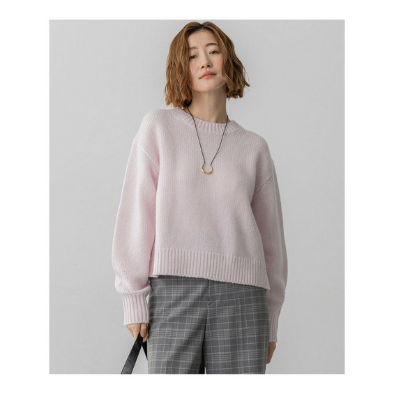 ふっくらとした天竺編みが魅力のプルオーバーニット。短すぎないコンパクトな丈感は、スカートにもパンツにも合わせやすく、着回し力の高い一枚。シンプルなシルエットながら、袖の絶妙なパフと全体のボリューム感にこだわり、女性らしい優しさと上品さを演出します。春らしさを先取りできるパステルなカラー展開で、顔周りを明るく華やかに彩ります。カラーは、上品な定番カラーのアイボリー(#002)、着回し力抜群のニュアンスカラーのライトグレー(#003)、優しい印象のパステルピンク(#012)、トレンド感のある大人のスモーキーグリーン(#063)、爽やかで清涼感のある春らしいスカイブルー(#072)、明るくポジティブな印象を与えるライトイエロー(#042)の6色展開です。