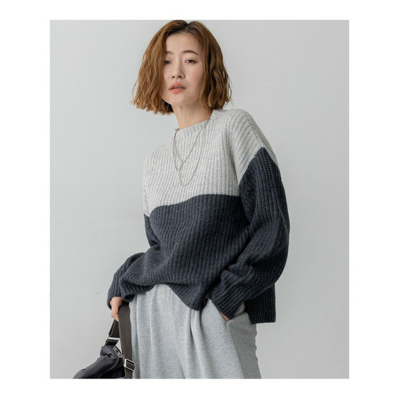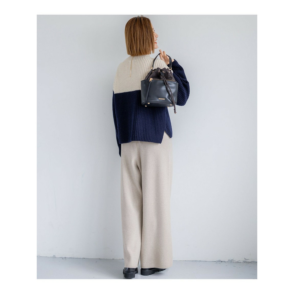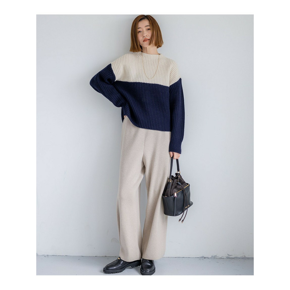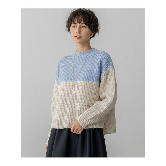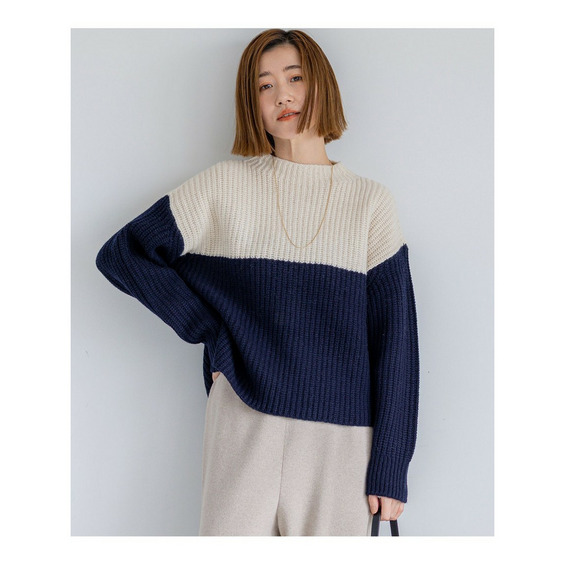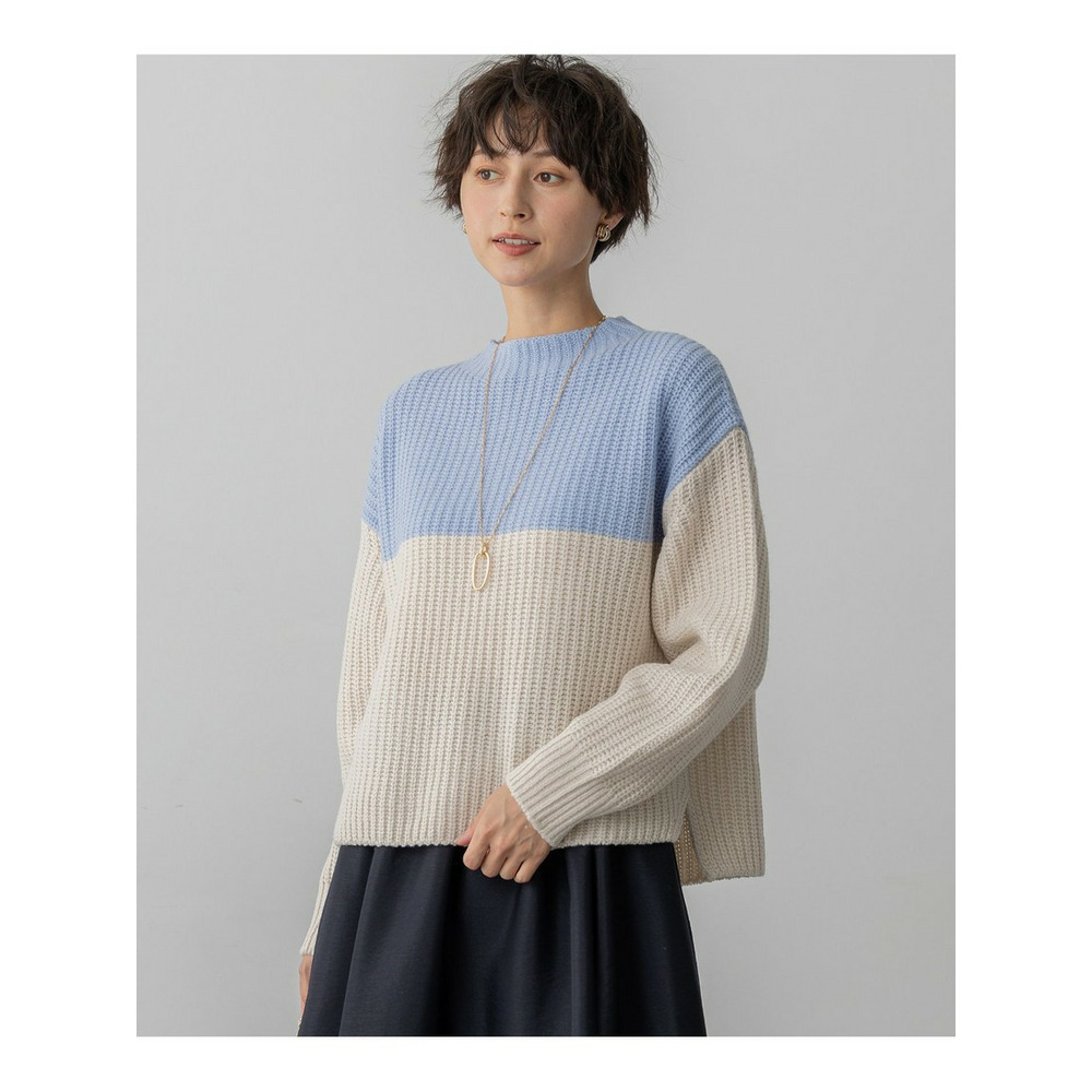 【洗える】ウールカシミヤ カラーブロック バルキー ニット