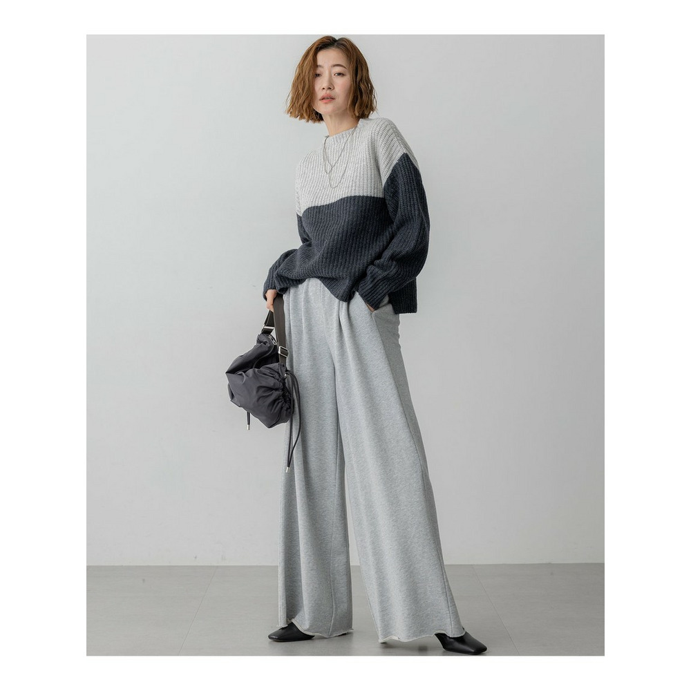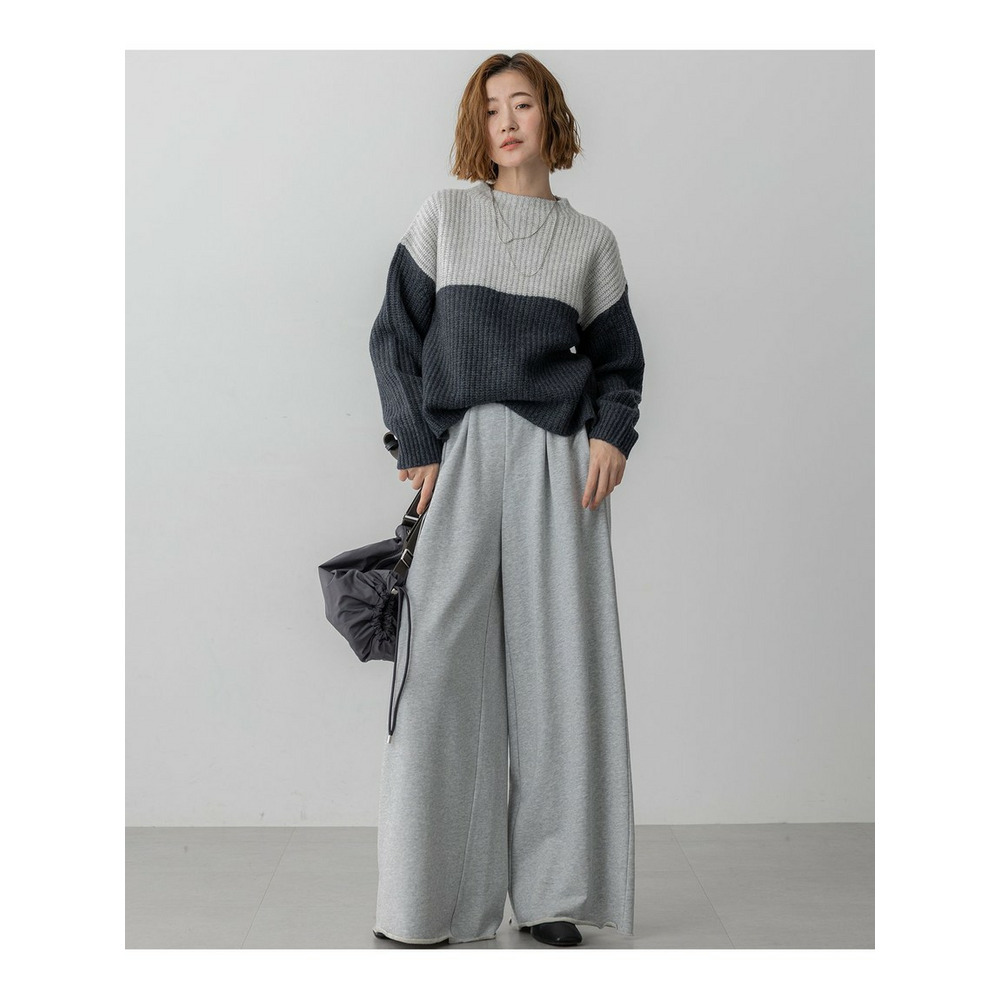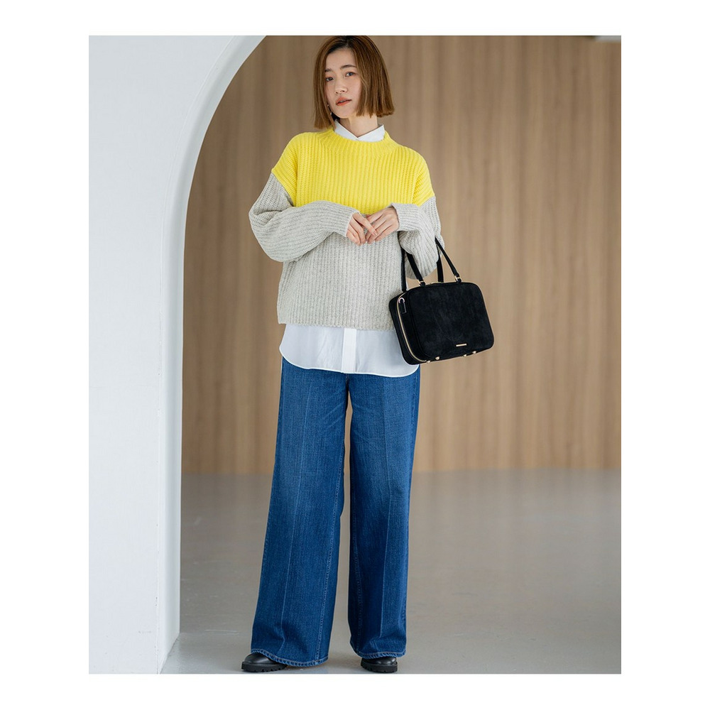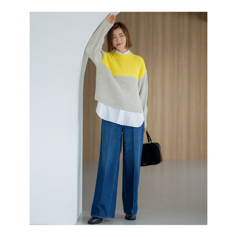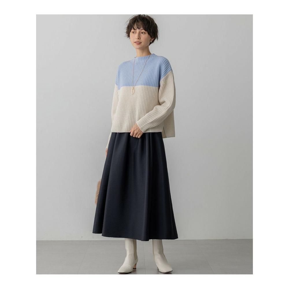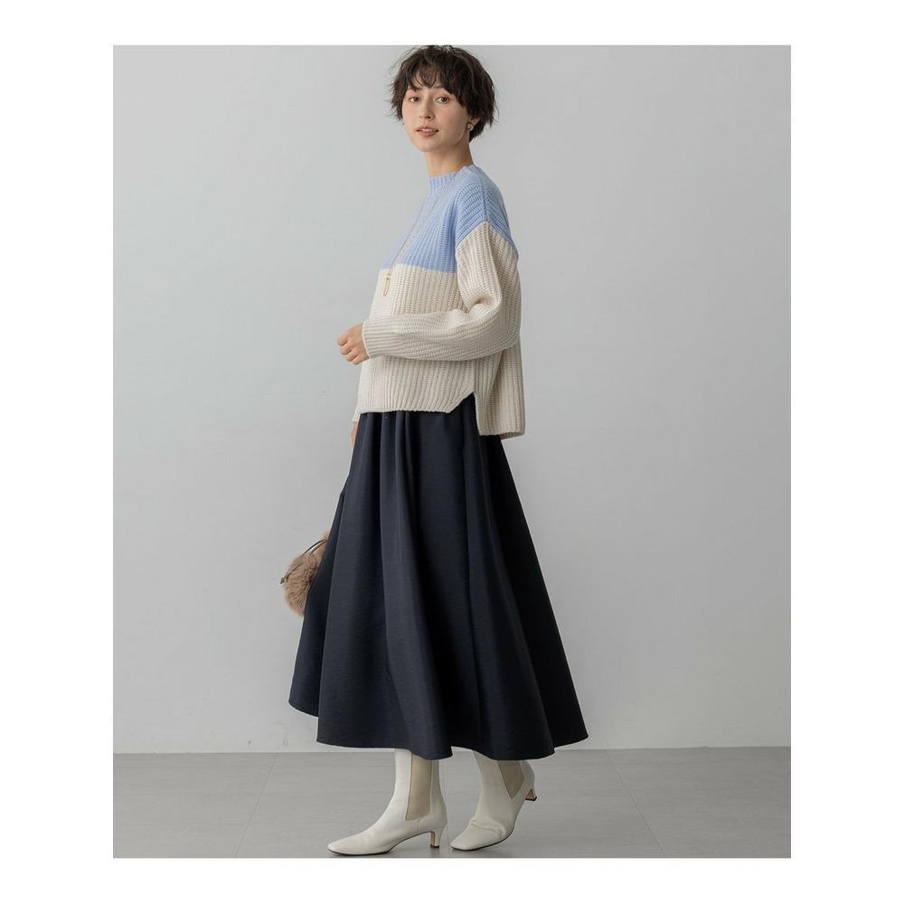 ざっくりとした表情豊かな畦編みに、洗練されたカラーブロック配色を施したプルオーバーです。バルキーな見た目ながらも、すっきりと見えるよう計算されたサイズ感で、体型をカバーしつつ着映えを叶えます。首元は編み続きのハイネックデザインで、暖かさと上品さを両立。一枚で着るだけでコーディネートの主役になり、シンプルなボトムスと合わせるだけで旬のスタイリングが完成します。カジュアルなデニムと合わせてデイリーに、きれいめなパンツやスカートと合わせてちょっとしたお出かけにと、幅広いシーンで活躍する着回し力の高いアイテムです。 カラーは、上品で落ち着いた印象のライトベージュ×ネイビー(#233)、シックで洗練されたライトグレー×ミッドグレー(#203)、明るく華やかなレモン×ライトグレー(#242)、爽やかで優しいサックス×ベージュ(#272)の4色展開です。