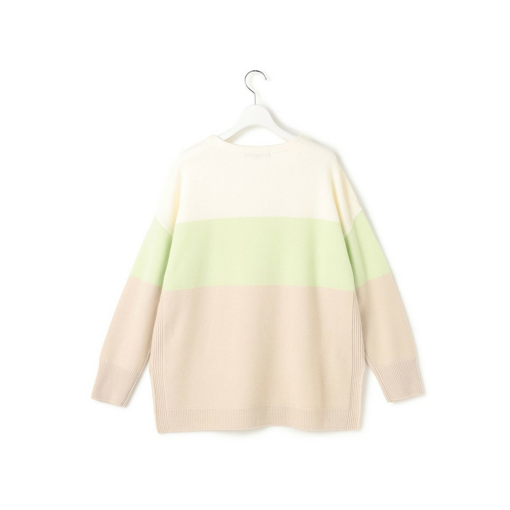 【洗える】ウールカシミヤ カラーブロック チュニック ニット