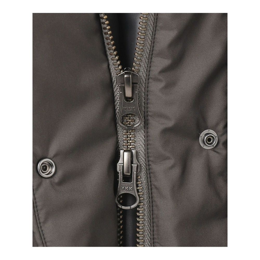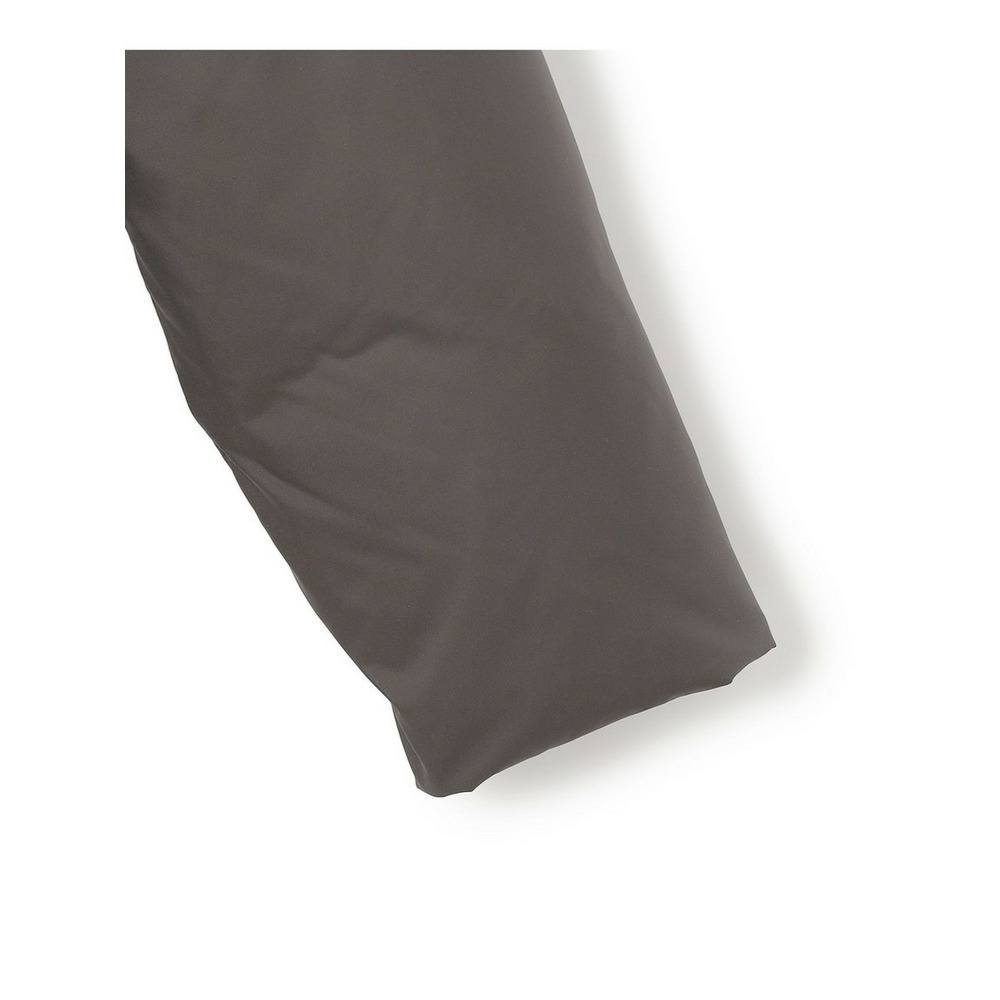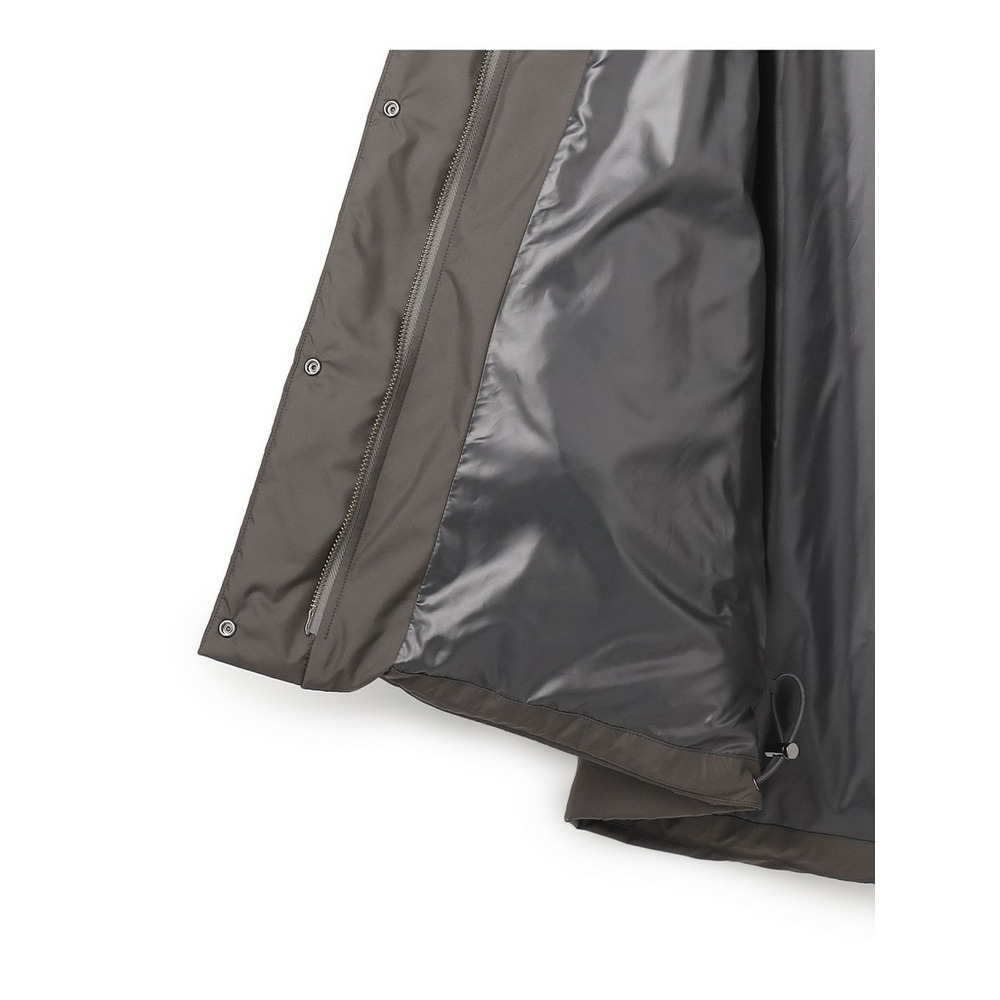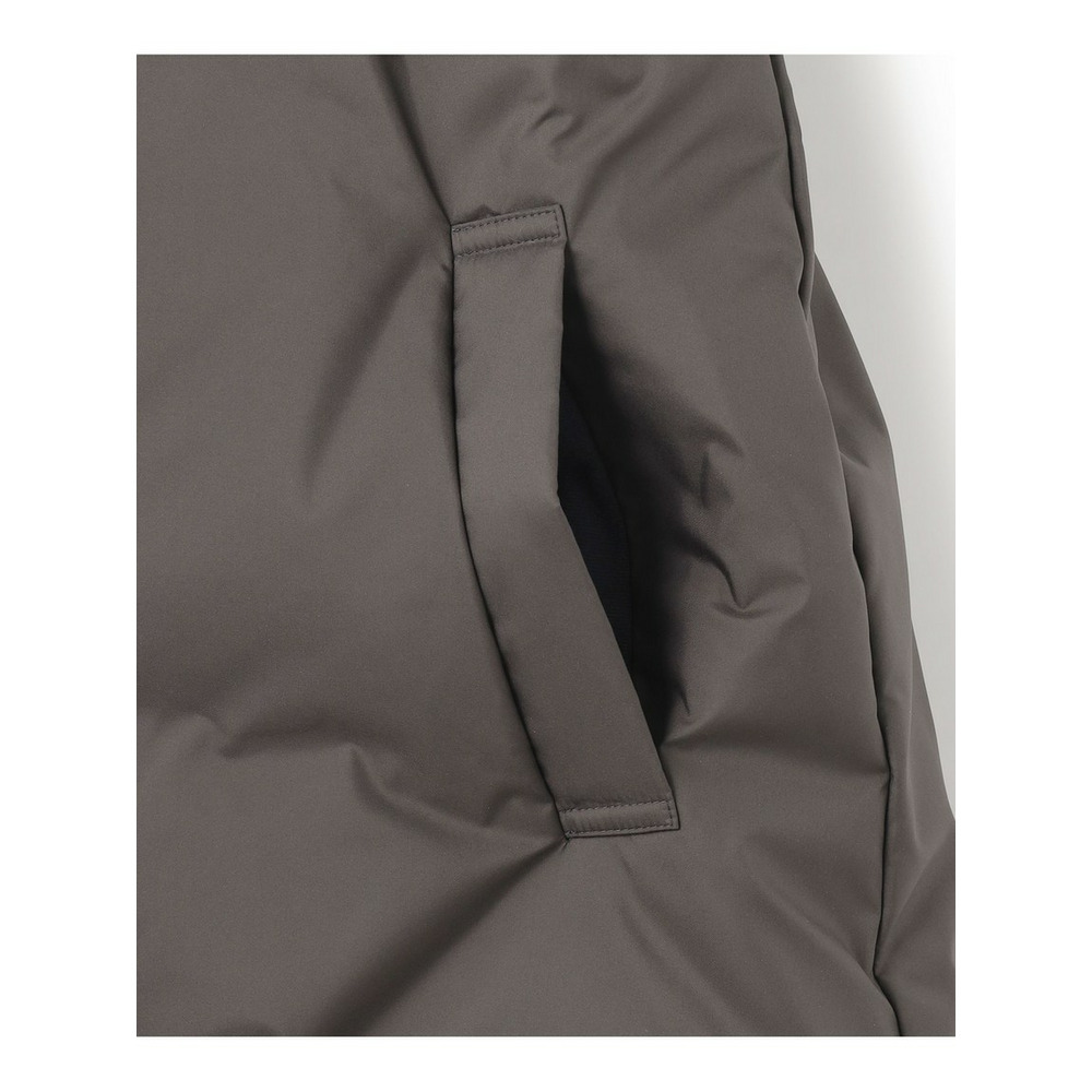 表撥水加工 裏シレー加工のポリエステル高密度タフタを使用しています。しなやかさと上品な光沢感を併せ持つ大人らしい質感が特徴です。また、表面ステッチのある従来のダウンでは、針と糸を使用するため、ダウン表面にどうしても小さな針穴が発生し、水滴や冷気を含んだ空気が侵入します。表面をステッチレスにすることで、ステッチ部分からの水滴や汚れの侵入を防ぎ、ダウン表面の撥水効果とダウンパックの衛生を保ちます。