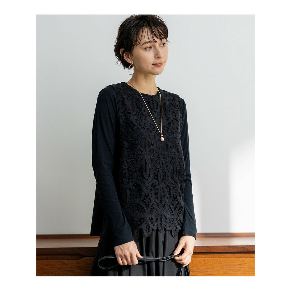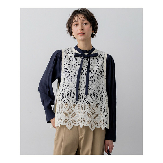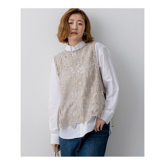 繊細なレースが魅せる、大人のための上品レイヤードベスト