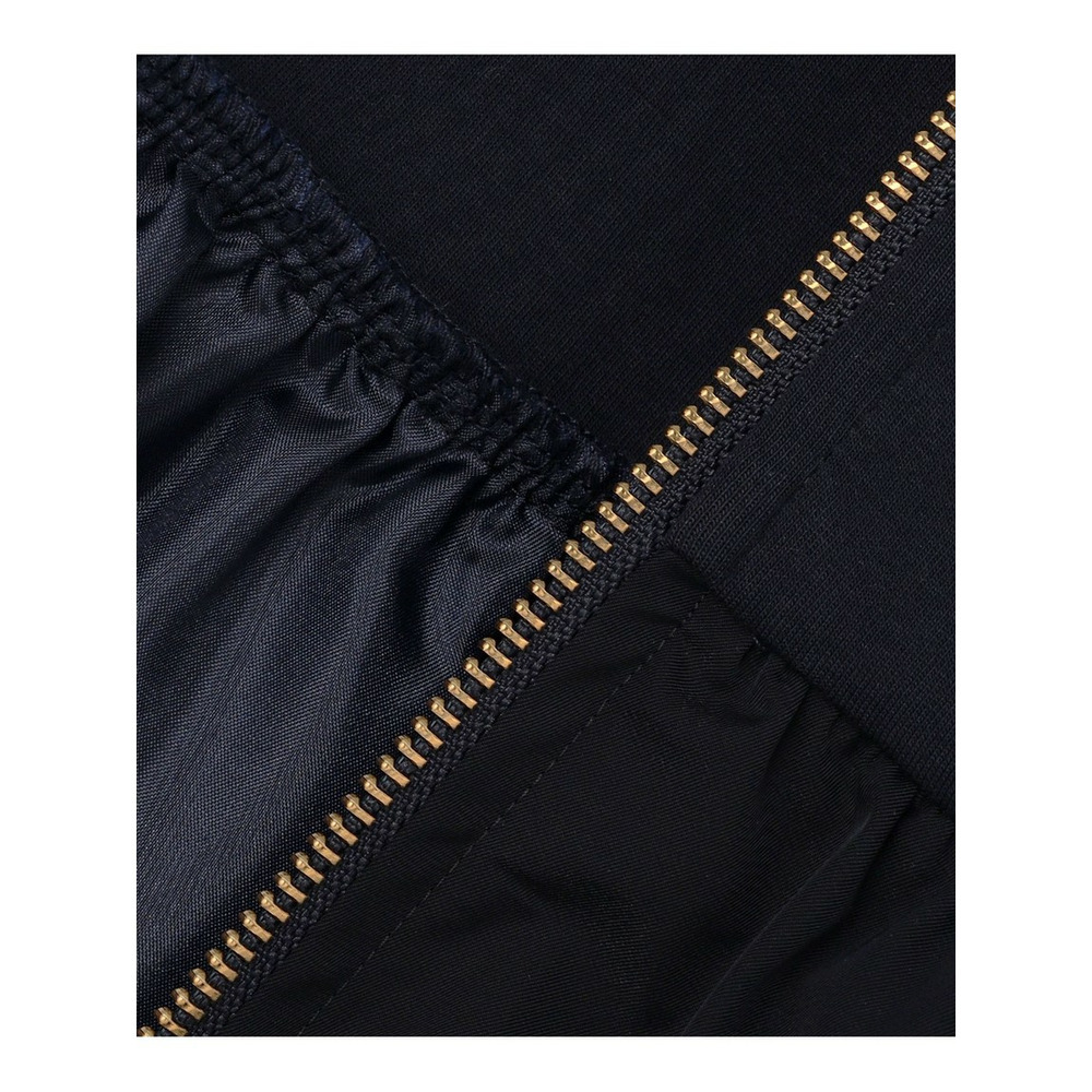 毛羽の少ない綿糸を使用したクリーンな表面にさらにバイオ加工をほどこし、上品な質感に仕上げました。表と裏面の繋ぎの糸に膨らみのあるポリエステル糸を使用し、かさ高でハリがありながらもエアリーな膨らみをつけています。コンビの布帛素材は高密度に織り上げたツイルの表情が上質感のあるタフタ素材。しなやかでごわごわしない、程よいハリ感がきれいなシルエットを表現します。タフタ部分には撥水加工が施されています。