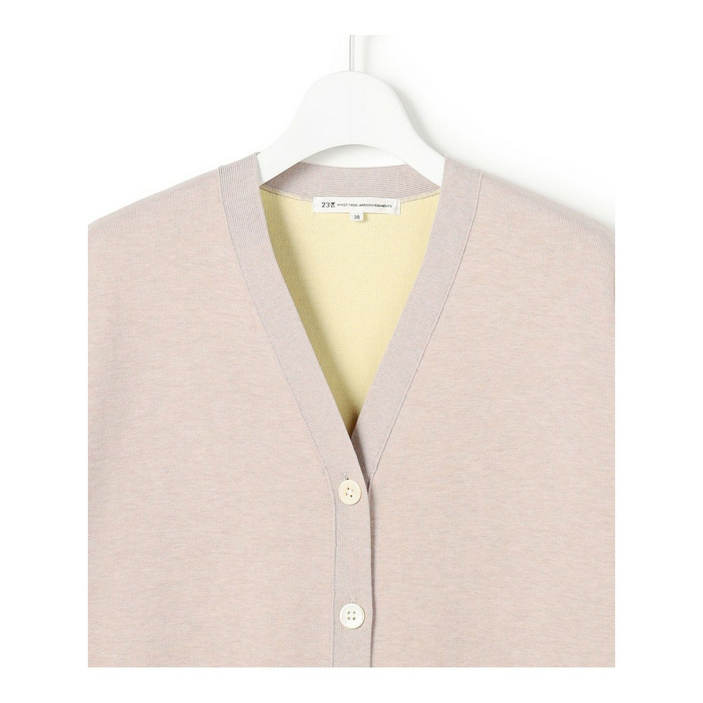 繊細な繊維を活かした、バイカラーのダブルフェイスカーディガンです。同シリーズのプルオーバーに使用している素材をベースに、細番手の糸を一本増やすことで、より高密度で肉感のあるアウターライクなカーディガンに仕上げました。繊細なコットン繊維がもたらす肌触りの良い質感は、シーズンを通して長くご愛用いただけます。襟元や裾からさりげなく覗くバイカラーが、着こなしに洗練されたアクセントを添えます。ゆとりのあるサイズ感と、ヒップ周りを自然にカバーする着丈で、体型カバーも叶えます。季節の変わり目の羽織りとしてはもちろん、シンプルなインナーに合わせるだけで上品なスタイリングが完成します。 カラーは、温かみのあるベージュに顔周りを明るく見せるイエローを組み合わせたベージュ×イエロー(#033)、知的で落ち着いたネイビーに爽やかなサックスブルーが映える洗練された配色のネイビー×サックス(#075)の2色展開です。