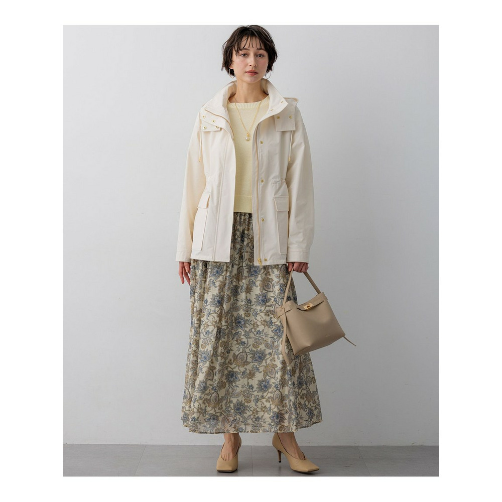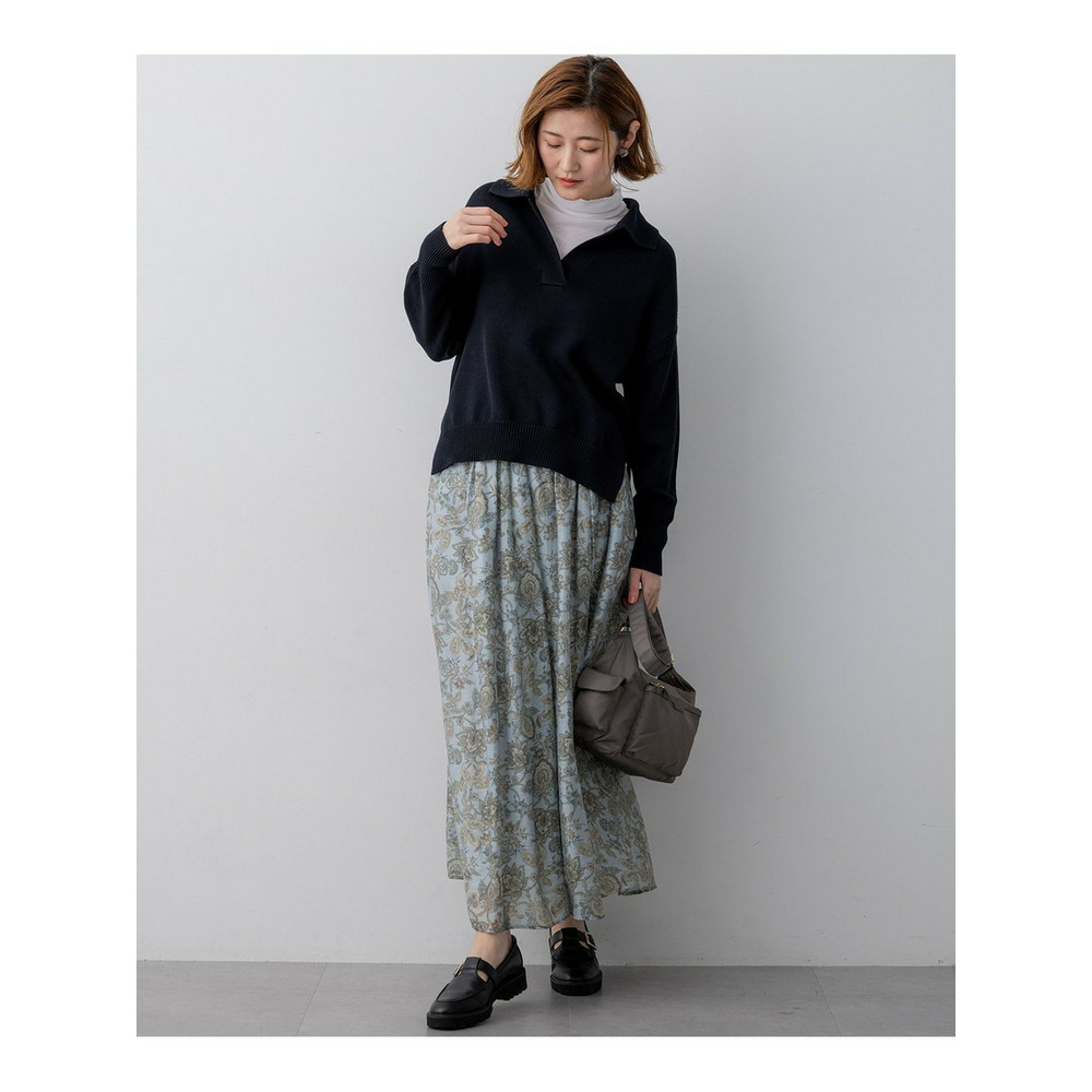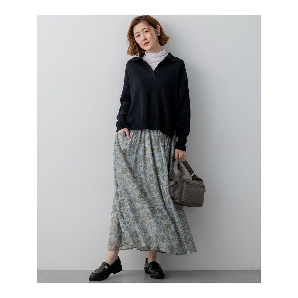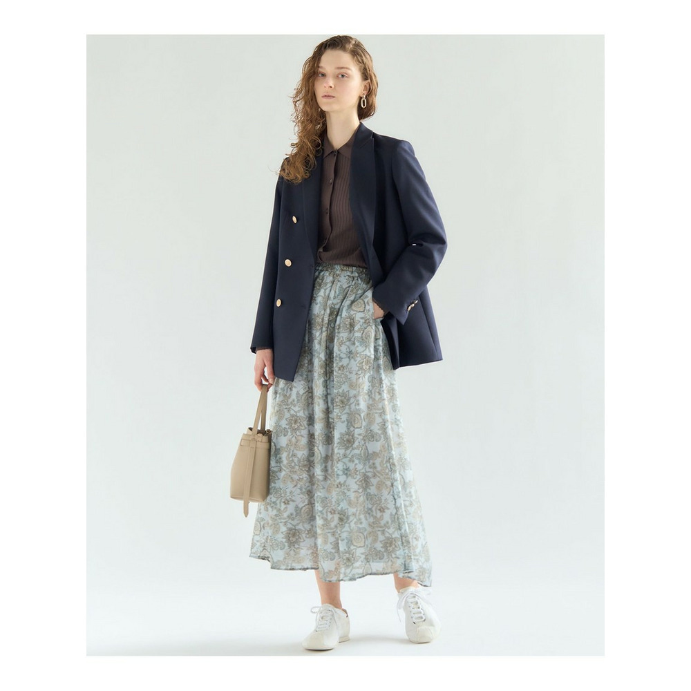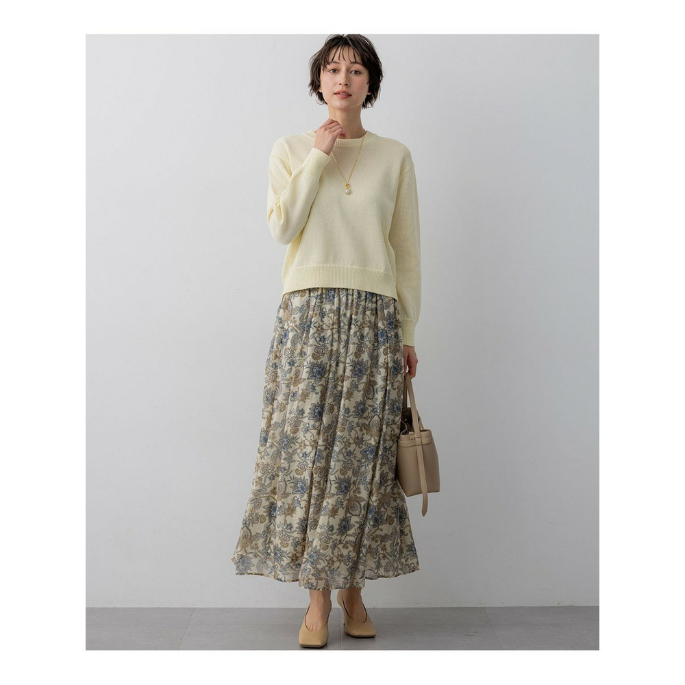 存在感のあるペイズリープリントを主役にした、シンプルなフレアスカートです。程よい分量感がありながらも、透け感のある軽やかな素材を使用しているため、重たくなりすぎず、軽やかな雰囲気でご着用いただけます。歩くたびにしなやかに揺れるシルエットが、コーディネートに上品な華やかさをプラスします。シンプルなトップスと合わせるだけで、洗練された大人のスタイリングが完成する一枚です。 ブラウスやニットと合わせてオフィススタイルに、Tシャツやスウェットと合わせてカジュアルダウンにと、幅広いシーンで活躍します。お食事会や旅行など、少し特別な日のお出かけにもおすすめです。カラーは、柔らかな印象で上品さを引き立てるアイボリー系(502)と、爽やかで洗練された雰囲気を醸し出すサックス系(572)の2色展開です。