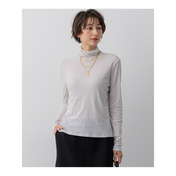 さりげない透け感と程よい厚みが今年らしい、存在感のあるタートルネックのレイヤードアイテムです。ネックにフィットしすぎず、ふんわり少したるませて着用いただくと決まりの良いバランスに。ニットやスウェットの襟元からのぞかせれば、奥行きのあるこなれたスタイリングが完成します。シアーな素材感を損なわないよう、襟端を繊細なロック始末で軽く仕上げているのもこだわりポイント。 カラーは、清潔感あふれるクリアなホワイト(#001)、シックで洗練された印象のブラック(#005)、肌なじみが良く上品な雰囲気のベージュ(#033)の3色展開です。