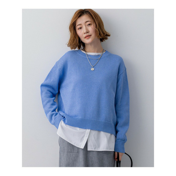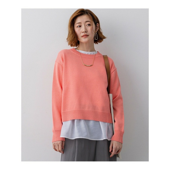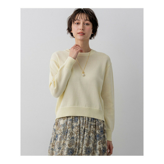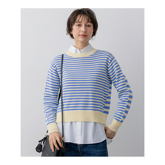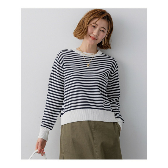 程よい抜け感のあるサイジングとシンプルなクルーネックのニット。肌寒い時季に嬉しい適度な肉感がありながらも、肌映りの良い質感で、春の訪れを感じさせる軽やかな印象を与えます。美しい発色を活かしたシーズンカラーと、着こなしのアクセントになるピッチ違いのボーダー柄をご用意しました。一枚でさらりと着るのはもちろん、コートの肩掛けでカラーをプラスしたり、シャツやカットソーとのレイヤードスタイルも楽しめます。カラーは、やさしい印象のライトイエロー(#042)、華やかなピンク(#012)、爽やかなスカイブルー(#072)、シックなオフ×ネイビー(#101)のボーダー、そして上品なライトイエロー×スカイブルー(#142)のボーダーの5色展開です。