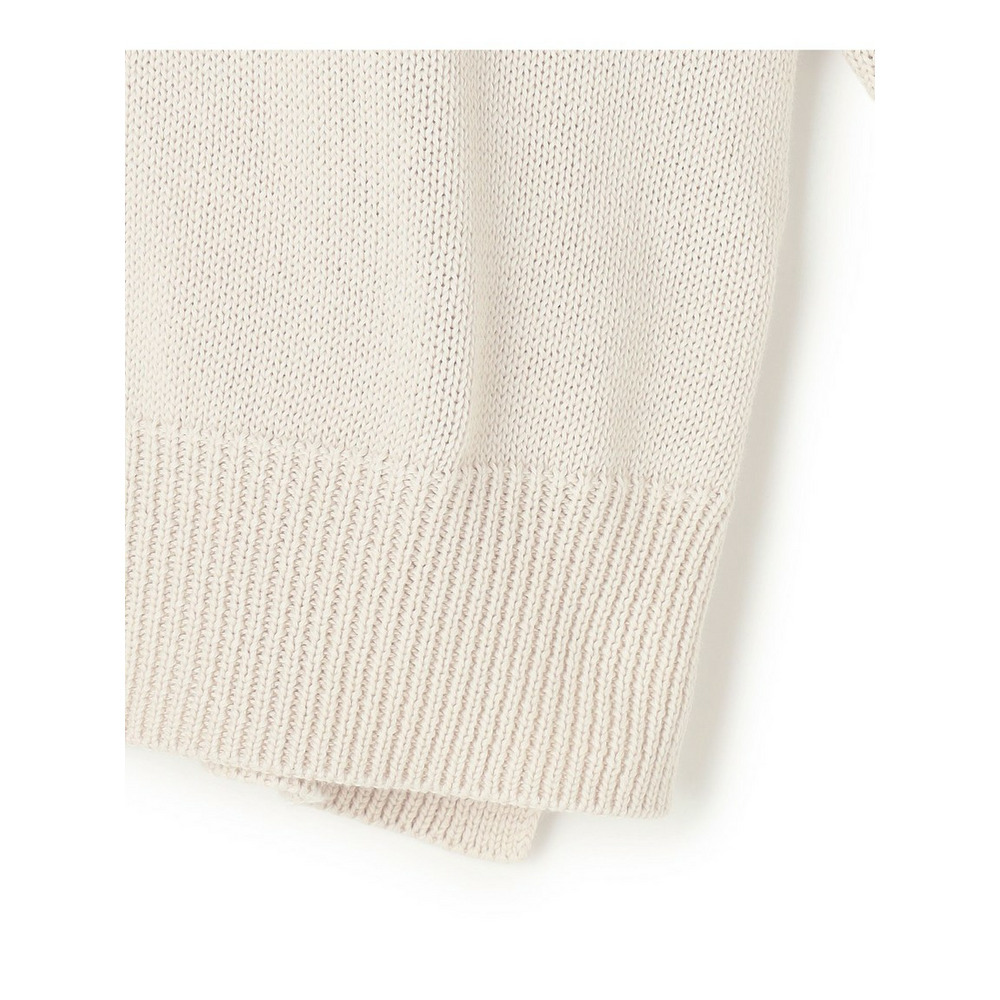 一枚で着映えが叶う、スキッパー襟のプルオーバーです。天竺で編み立てたシンプルなデザインながらも、計算されたサイズ感で、一枚着としてはもちろん、シャツやTシャツとのレイヤードスタイルもバランス良く決まります。脇にスリットが入っているため、前側の裾を軽くタックインし、襟を抜いて着こなすことで、簡単にニュアンスのあるこなれたスタイルが完成します。大人の女性にふさわしい、洗練された抜け感を演出してくれる一枚です。 カラーは、どんなスタイルにも馴染む清潔感あふれる定番カラーのホワイト(#001)、優しく柔らかな印象を与える上品なニュアンスカラーのベージュ(#033)、知的で洗練された雰囲気を醸し出す大人のためのシックなカラーのネイビー(#075)の3色展開です。